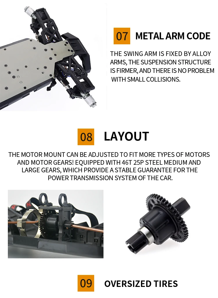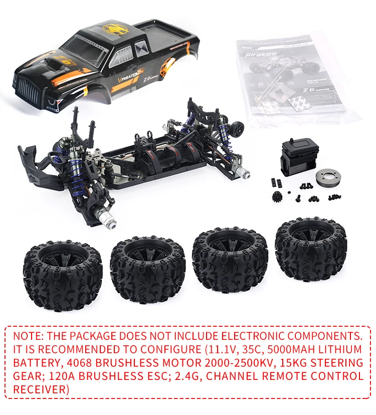 Связанный автомобиль представляет собой пустую раму, которая содержит только корпус и шины и не содержит ESCs, двигателей, рулевого механизма, аккумуляторов, зарядных устройств, пультов дистанционного управления и приемников.