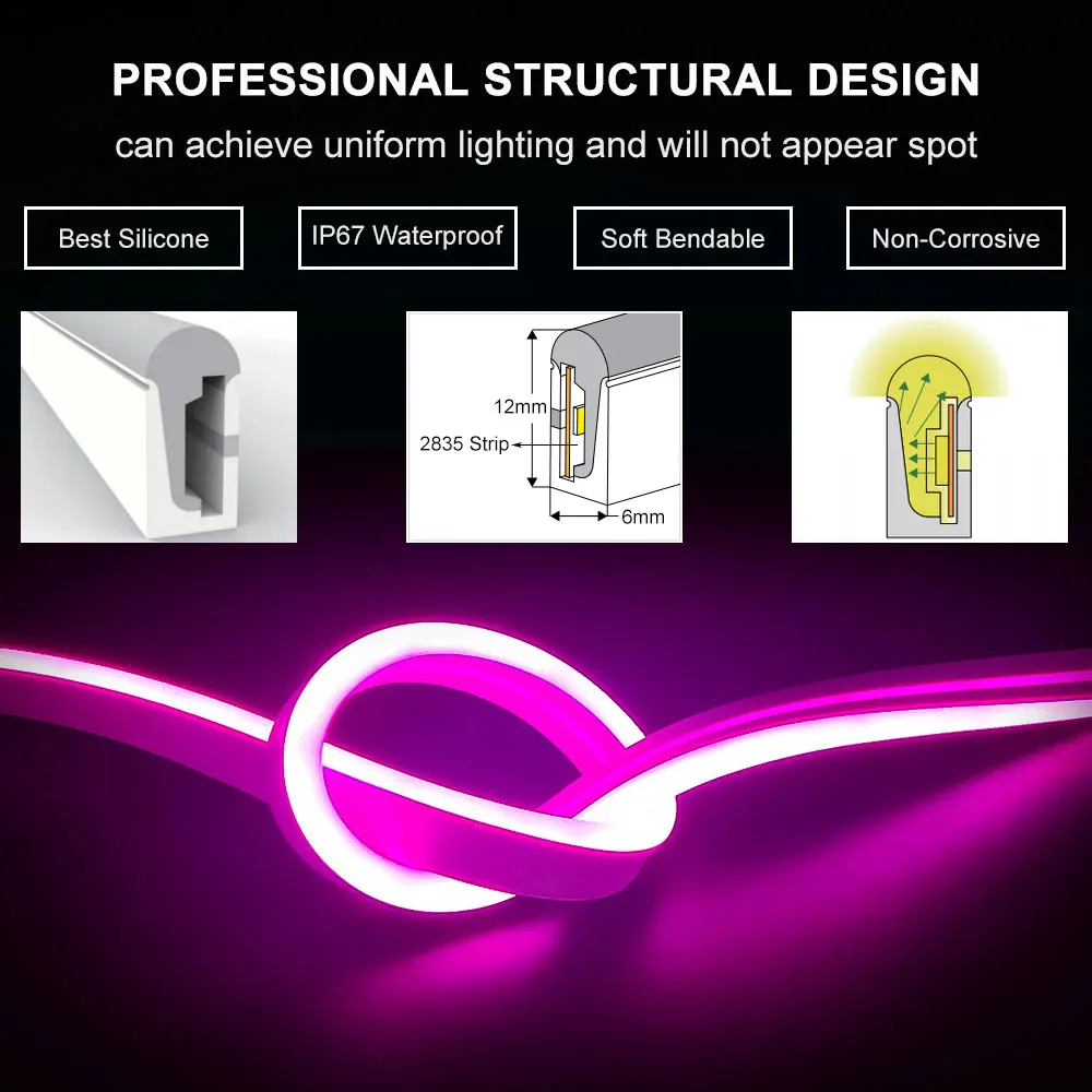 2. Модернизированные светодиоды и дизайн с боковой яркостью делают водонепроницаемый неоновый светильник ярче, чем другие, дальность проекции 120 градусов обеспечивает большое освещение.