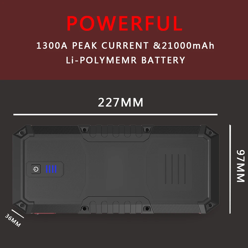 Sku000321-это портативный высокопроизводительный литий-ионный аккумулятор емкостью 21000 мА · ч, который обеспечивает 1300-ампер для запуска аккумулятора мертвых автомобилей за считанные секунды. Он оснащен надежной технологией безопасности, которая принимает риск и боится прыжков, начиная с обеспечения мощности, только когда это безопасно сделать. Наш стартер скачка стоит до многократного профессионального использования.