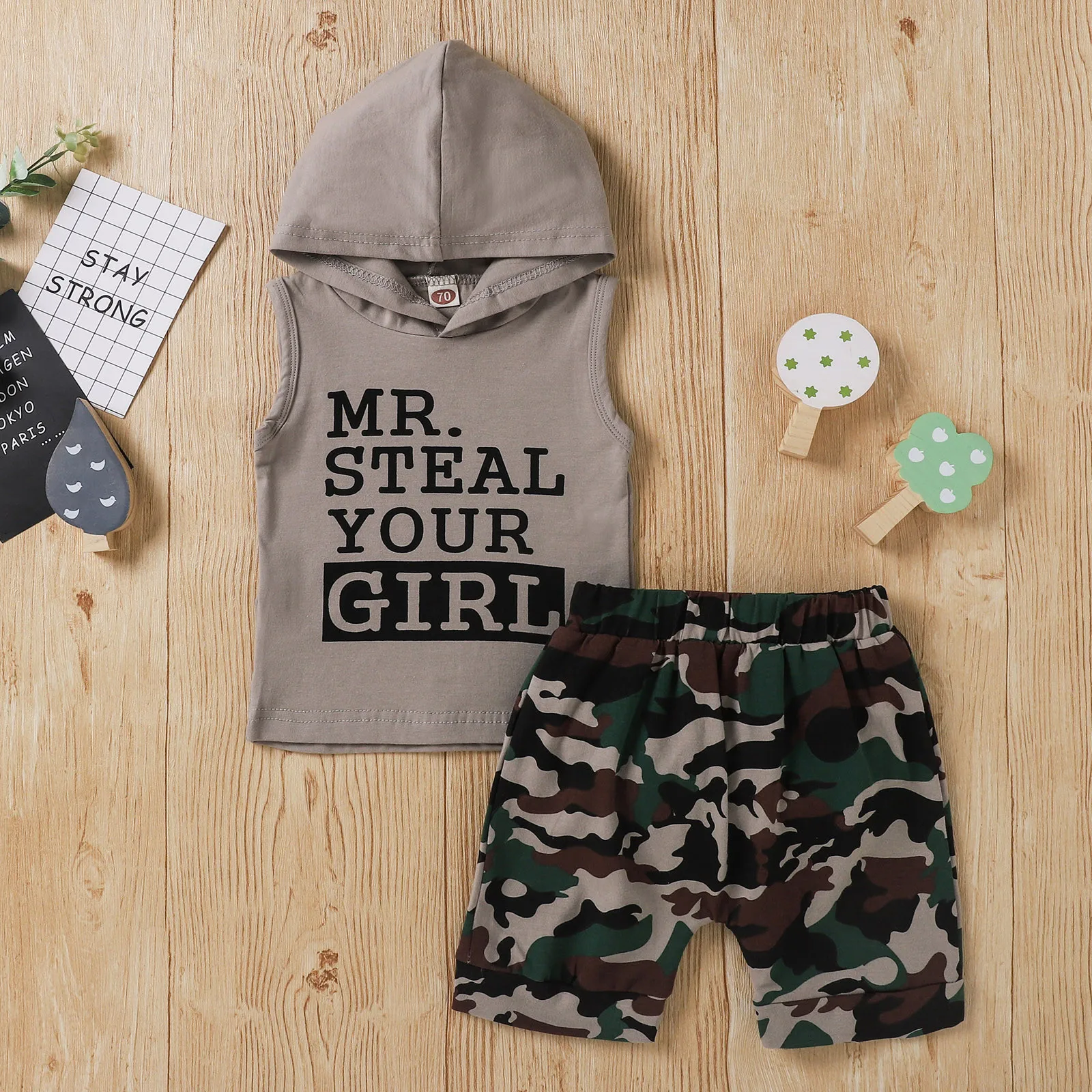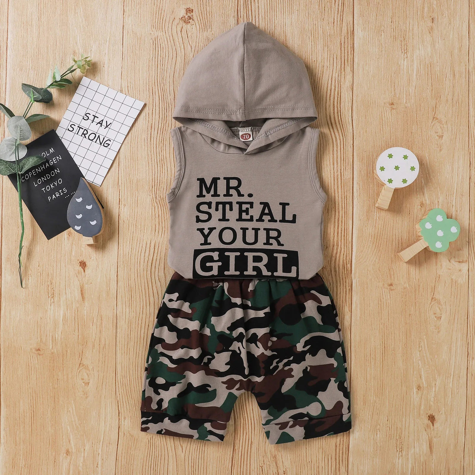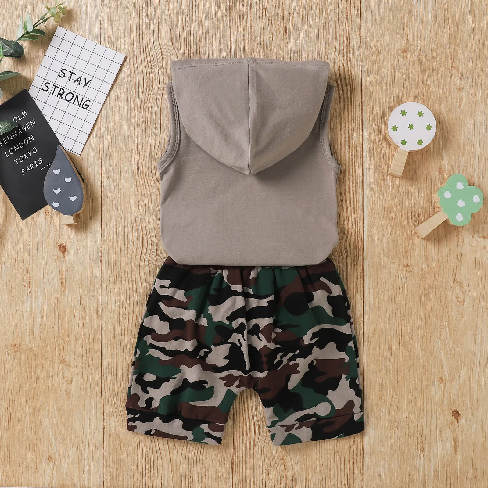 Толстовка с капюшоном и надписью для маленьких мальчиков; Камуфляжный комплект с шортами