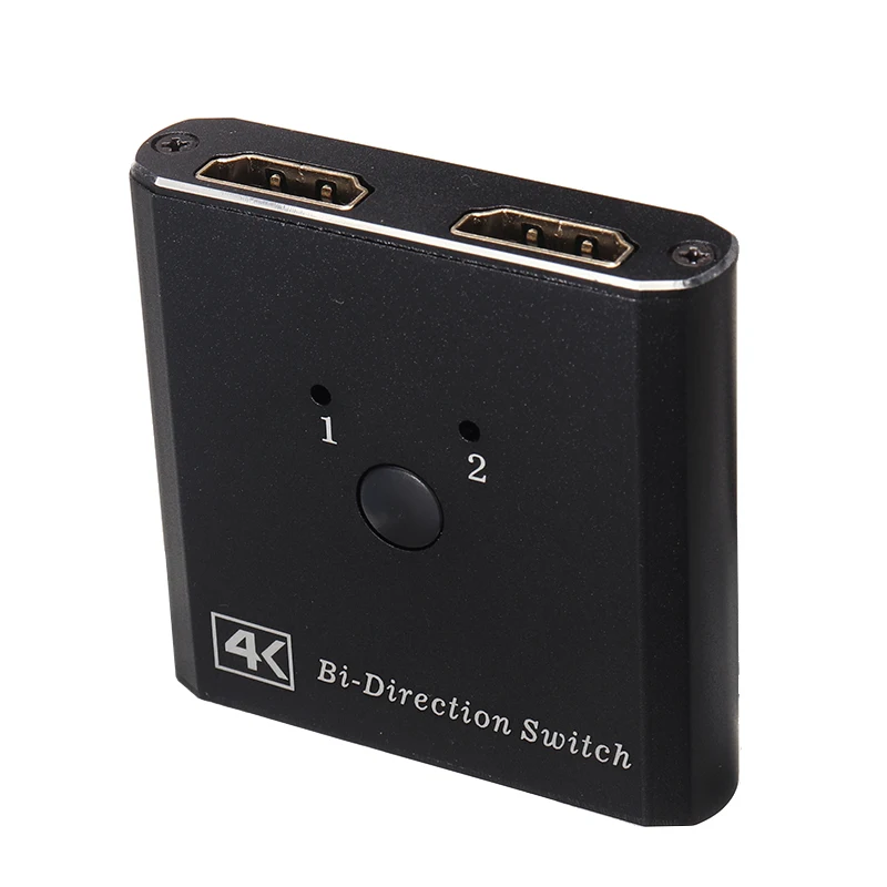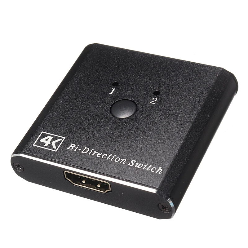 Этот двунаправленный переключатель, совместимый с HDMI, может подключить два источника HDMI к одному совместимому с HDMI дисплею или подключить один источник HDMI для переключения между двумя дисплеями (будет отображаться только один монитор).