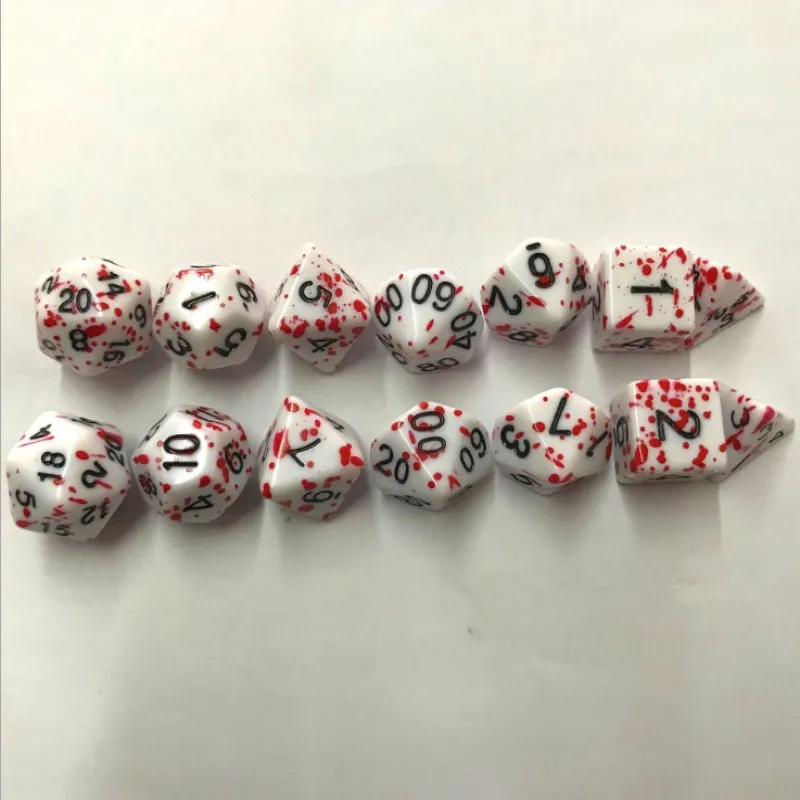 "Описание: 100% новый и высокое качество Тип: многогранные кости Цвет: белый и красный Размер: смешанный размер Вес: 33 г Материал: акрил Кол-во: 7 шт. Посылка включает в себя: 7 многогранных кубиков"