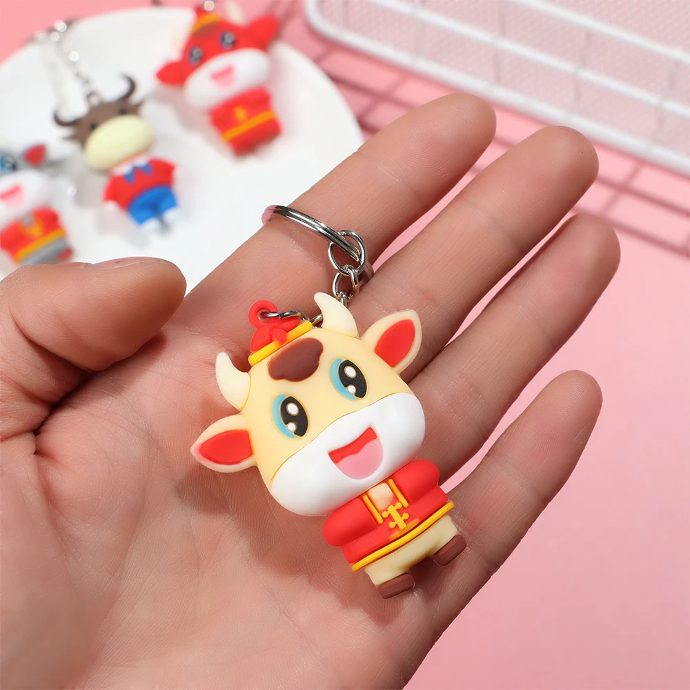 2021 год коровы брелок 3D Смола крупного рогатого скота брелок мультяшный милый автомобиль брелок для кулон для девочек Забавные игрушки дети животное подарок