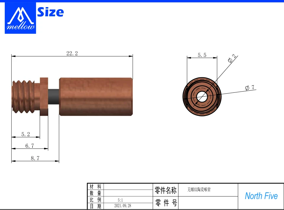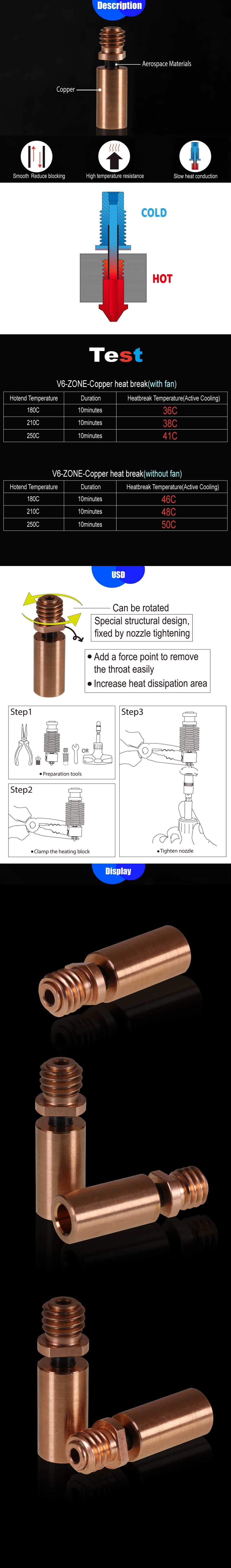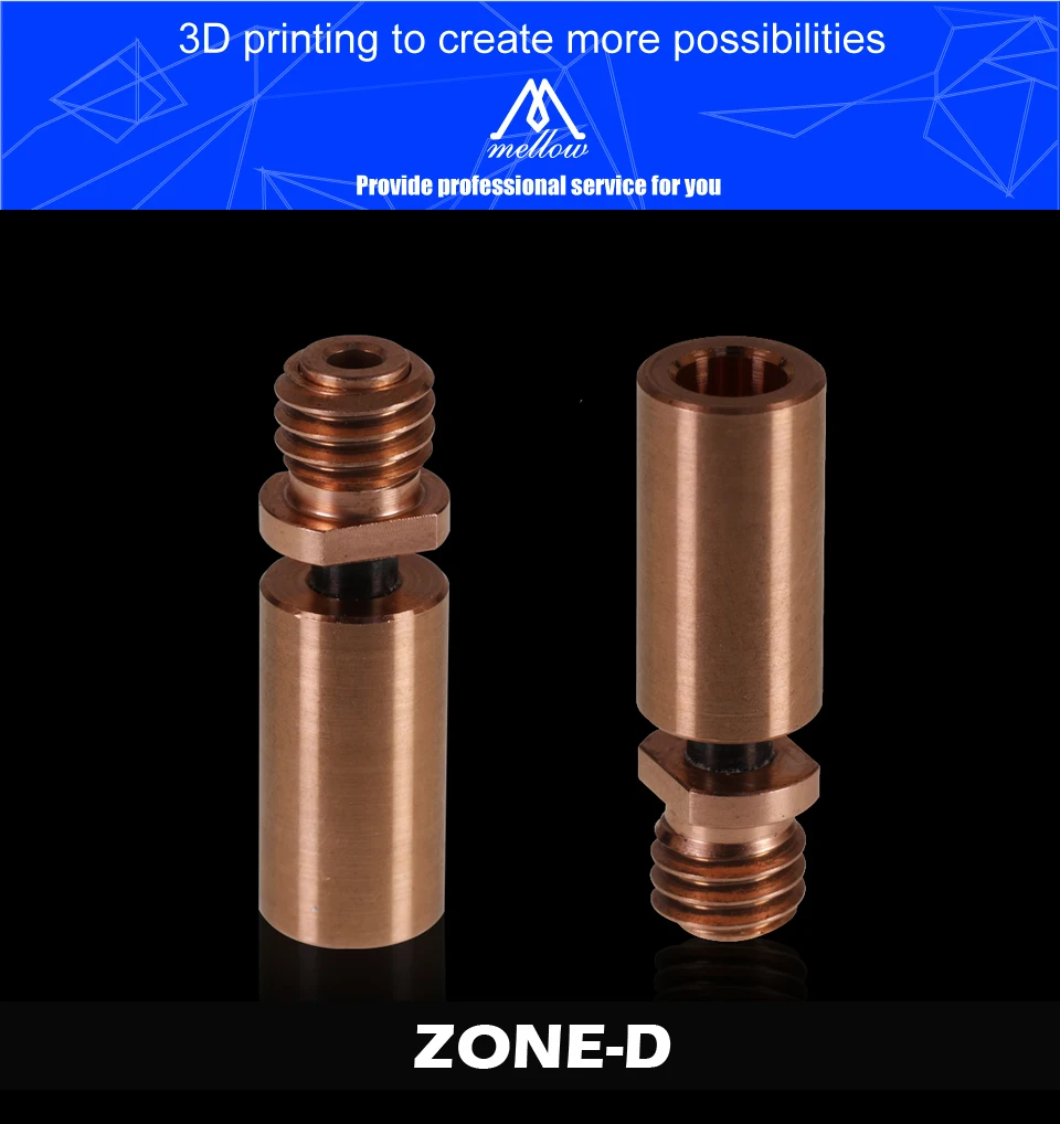 Использование аэрокосмических материалов-это идея, разработанная командой NF в 2016 году. Расположение горла требует плохой теплопроводности и антипригарных свойств для печатных материалов. Мы пробовали много экспериментов и, наконец, завершили их в 2020-08-15. Мы назвали этот продукт серией зоны и надеемся, что энтузиасты 3D печати попробуют новые продукты в новой зоне и создадут неограниченные возможности.После улучшения и тестирования командой NF мы запустили версию V2. Эта длина будет на 3 мм длиннее обычного теплового разрыва V6, но проблемы утечки и вращения были решены, что позволяет клиентам лучше испытать очарование аэрокосмических материалов, И мы в дальнейшем нашли использование метода аэрокосмических материалов, спасибо за вашу поддержку и поддержку. 2021-10-08 официальные продажиПоскольку материал менее липкий, чем металл, он уменьшает закупорку, вызванную трением горлаСочетание медного металла и аэрокосмических материалов, чтобы сделать Тепловой разрыв лучше, чем оригинальный тепловой барьер производительности и улучшить качество печати. Эффект печати превышает биметаллический нагрев, что упрощает печать PLA, ABS, PETG, PA, FLEX и т. д.Применение для: 1,75 ммМатериал: медь и аэрокосмический Материал sПосылка:1 * D-Zone тепловой пробой