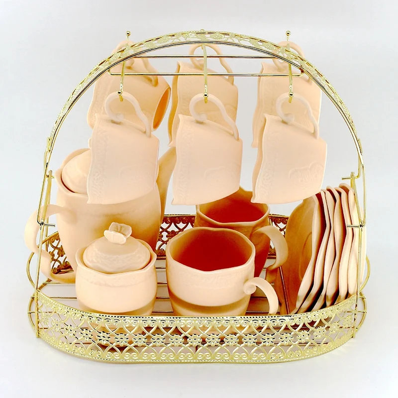 Керамическая полка для чашек, европейский стиль, стеллаж для кофейных чашек, чашка, органайзер, резное Кованое покрытие, корзина для хранения-ABUX
