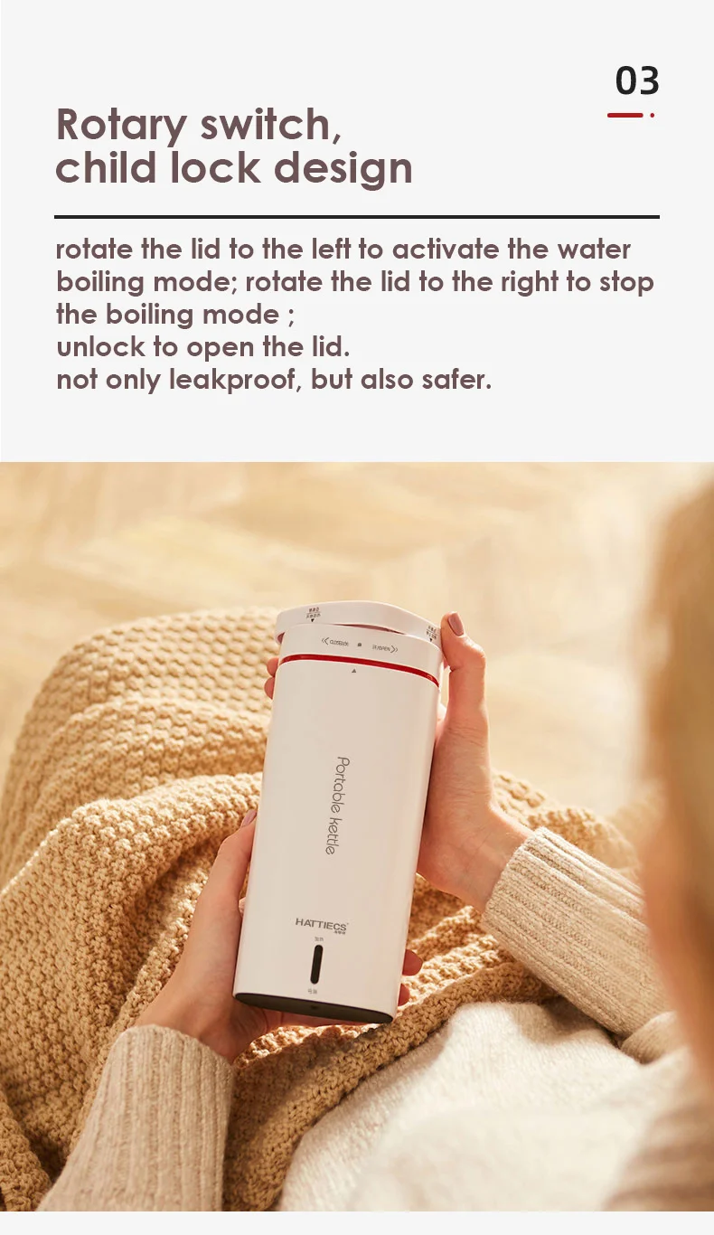 Поверните крышку влево, чтобы активировать режим кипения воды; Поверните крышку вправо, чтобы остановить режим кипения; Разблокируйте, чтобы открыть крышку. Не только герметичность, но и безопасность.