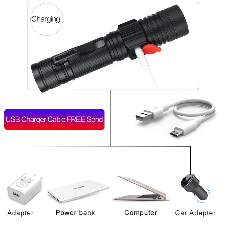 2. Перезаряжаемые фонарик с USB кабель --- подача заявки по сравнению со старыми традиционные 3 хааа батарейки фонарик, pocketman маленький фонарик светодиодный приходя с 18650 перезаряжаемый аккумулятор, что USB Перезаряжаемые. Всего 3 часа для полной зарядки. Вам не нужно беспокоиться о проблемах с батареей, заряжать любые устройства.