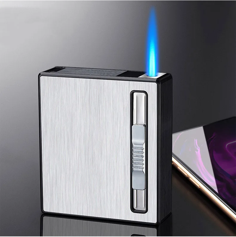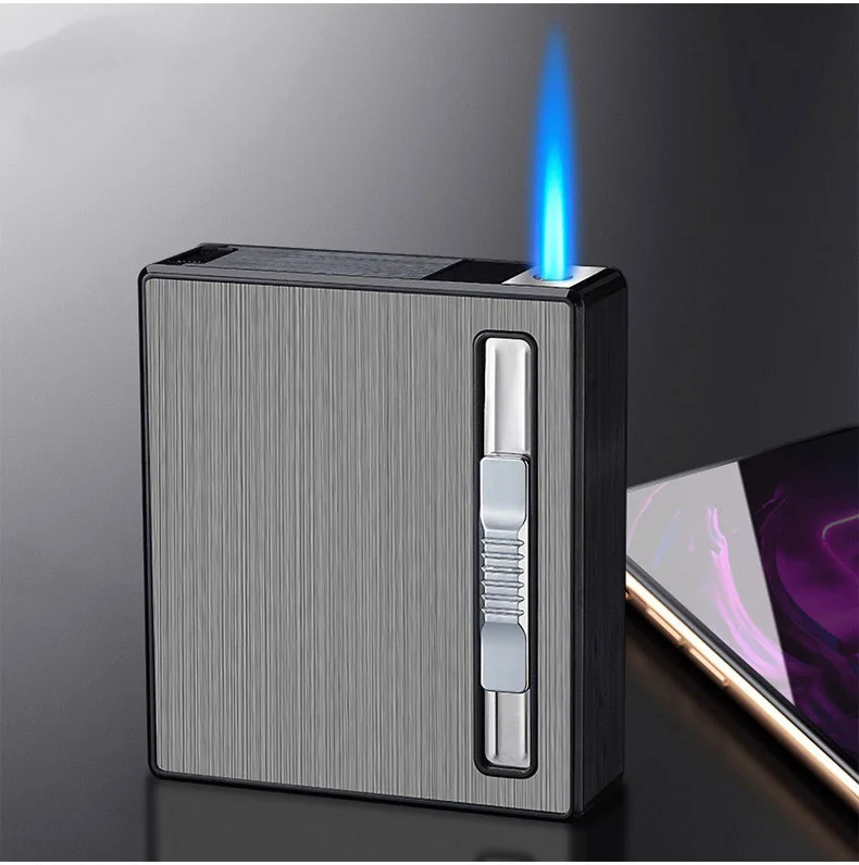 20 шт., металлическая зажигалка для сигарет с автоматическим отскакиванием дыма, ветрозащитная зажигалка с прямым струйным пламенем, чехол для зажигалки, мужские гаджеты