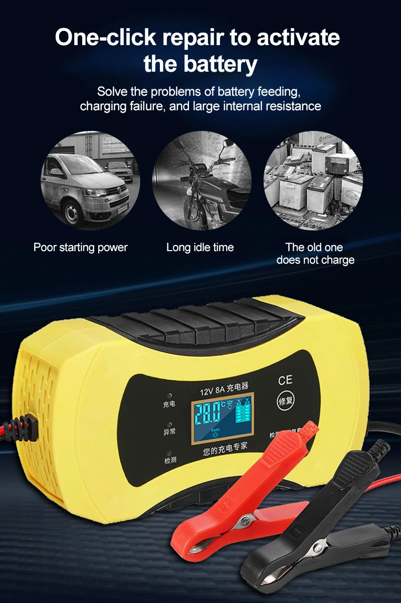 * Используя высокочастотную технологию ремонта импульсов, она имеет хороший эффект ремонта и активации для аккумуляторов низкого напряжения, батарей, которые долгое время простаивали, И батареи, которые не могут быть заряжены, что значительно сделает ваши батареи выглядеть новыми!
