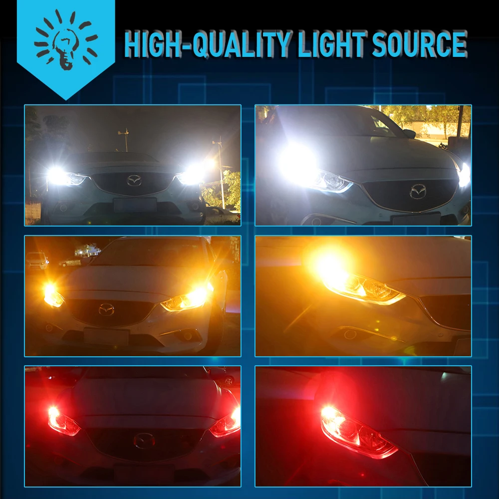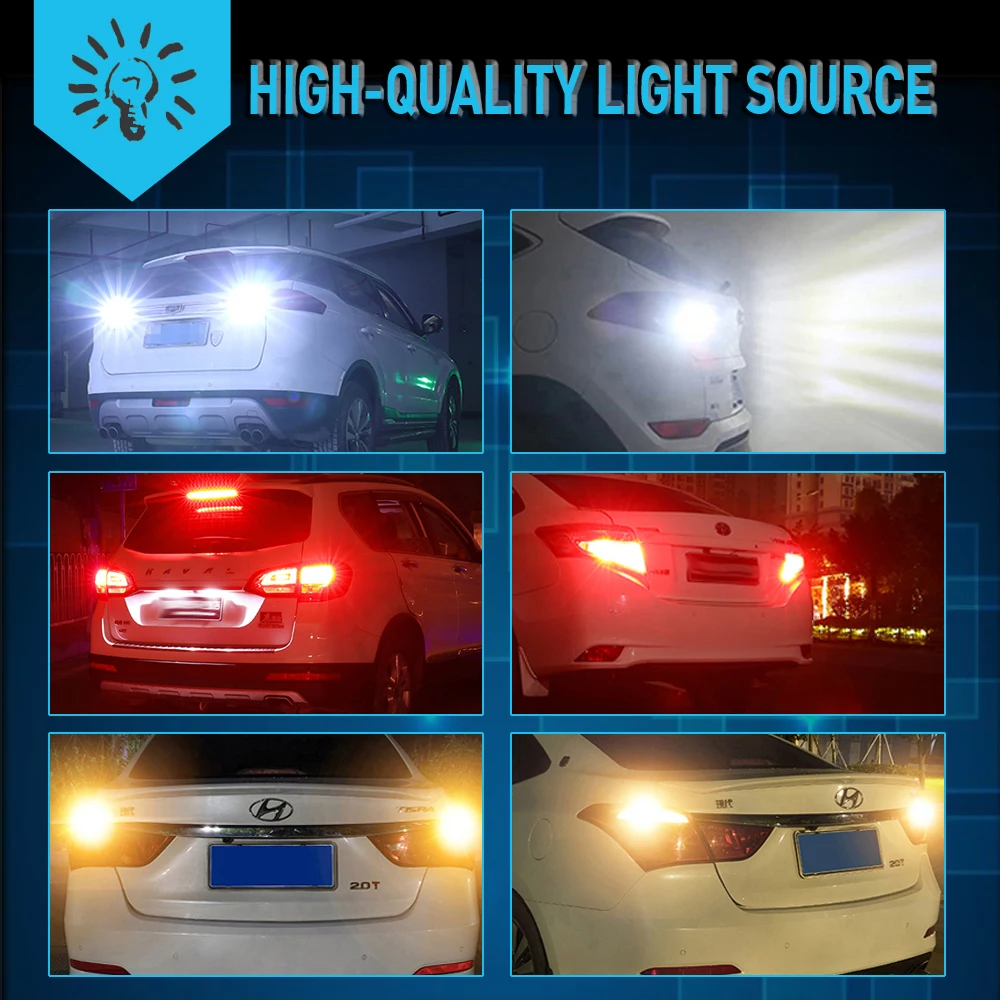 1.Works for DRL,daytime running lights,turn signal,backup reverse lights,tail bulbs,brake lights etc. 2. High power 3030 LED chips,which will provide a perfect beam pattern,high light output,low power consumption. 3.European and newest vehicle equipped with CAN-BUS system may require load resistors to bypass the error codes/flicker issue when intall as turn signal and brake lights.