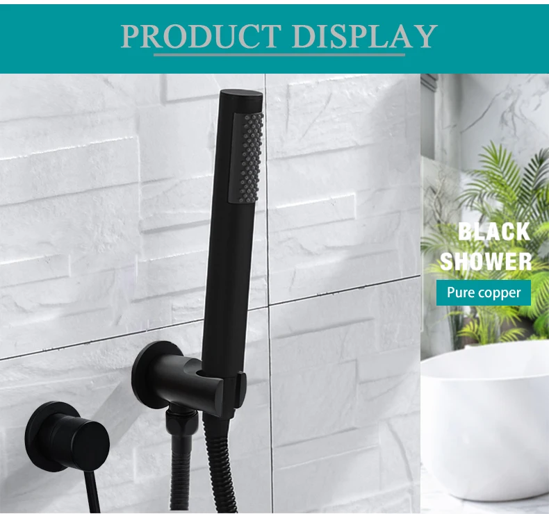 Black Round Shape Brass Hand Held Shower with Extra Long Hose and Bracket Holder Water Saving Shower Head