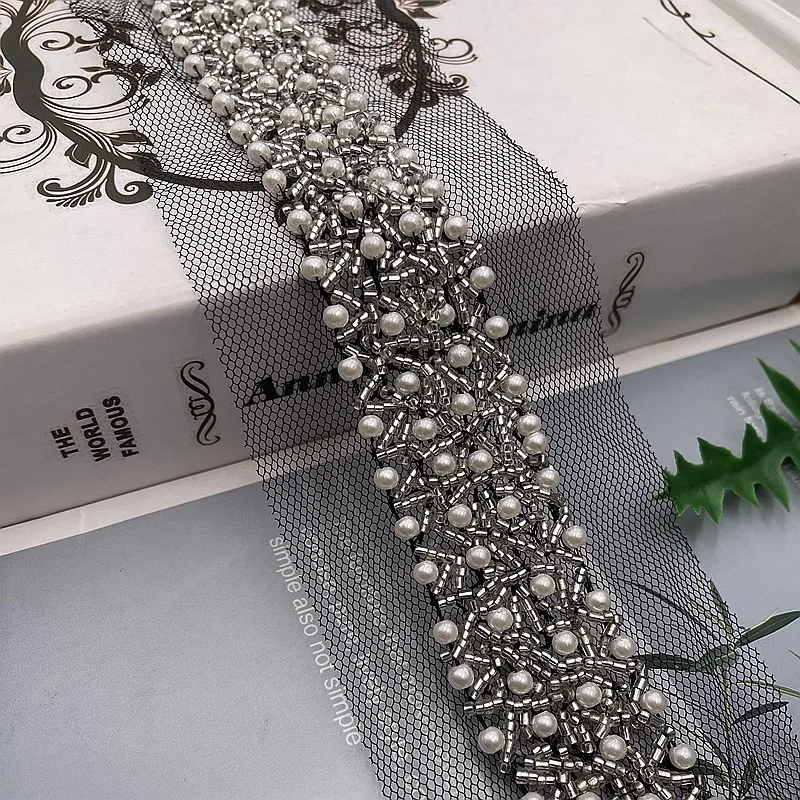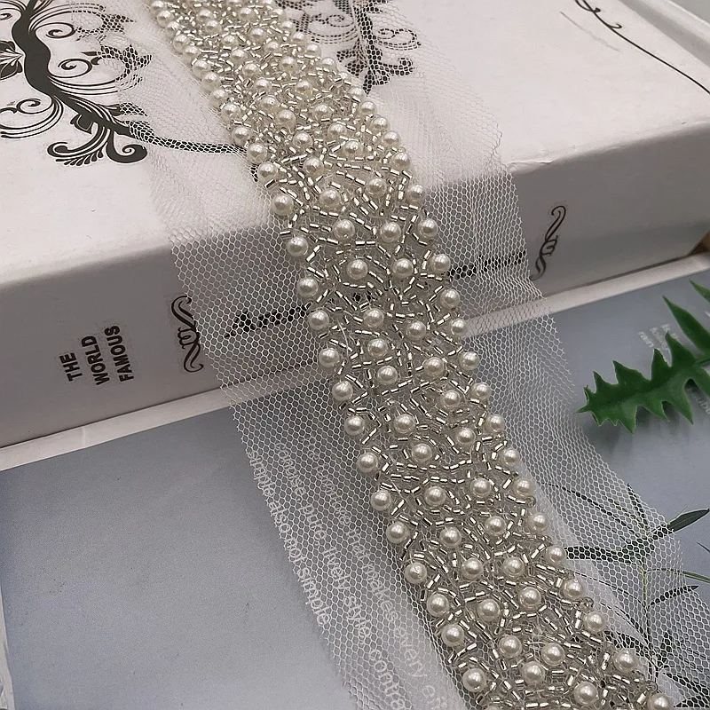 190 см/шт. кружевная лента ручной работы с жемчужными бусинами, тесьма для свадебного платья, юбки, воротник, вырез «сделай сам», шитье Аппликации, отделка