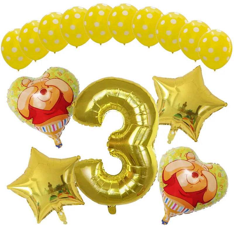 15 шт 18 дюймов мультфильм Винни Медведь фольга гелиевые шары Набор 30 дюймов номер Globos С Днем Рождения Украшения для вечеринки детские игрушки подарок