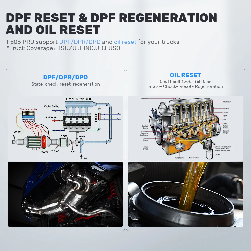 Работает на большинстве грузовиков с автомобильным покрытием J1708 и J1939 plus OBD2 и охватывает Hino, Mishubishi Fuso, Isuzu и Nissan UD коммерческие транспортные средства. С 1992 года Поддерживает SAE J1850PWM, SAE J1850 VPW, IS0 14230-4, IS0 9141-2,IS0 15765-4, SAE J1708, SAE J1939, OBDII Сканирование и диагностика кодов неисправностей с определением кода в двигателе, трансмиссии, тормозе ABS и кластере инструментов или управлении корпусом Регенерация ДПФ (Hino,Isuzu,Fuso,UD) Сброс масла (Hino,Isuzu,Fuso)