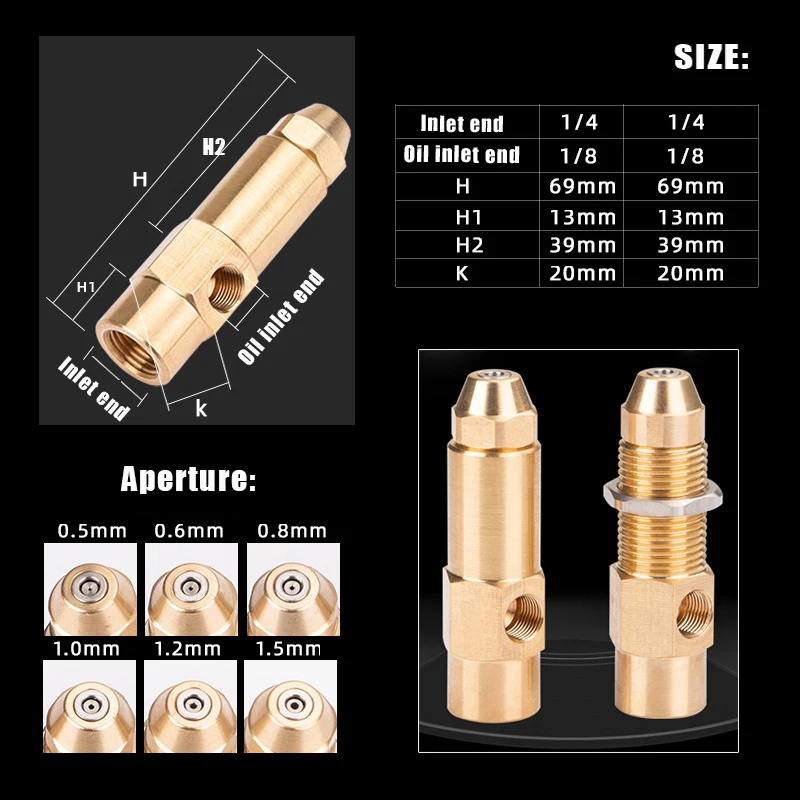 Информация о продукте: Общая длина: 68 мм Воздухозаборник: 1/4 ", пожалуйста, вставьте шланг с Φ8 мм или 6 мм Вход газа/масла: 1/8 ", пожалуйста, вставьте шланг с Φ8мм или 6 мм Диаметр отверстия: 0,5 мм 0,8 мм 1,0 мм 1,5 мм 2,0 мм 2,5 мм 3,0 мм 3,5 мм 4,0 мм Обзор продукта: Латунь Siphon Воздушный Распылитель топливного масла горелка сопло низкого давления может распылить Распылитель воздуха с низким давлением. Широко Используется в дизельном, тяжелом масле, отработанном масле, животном и растительном маслах, Топливная горелка на спиртовой основе, керосин, распыление масла. Характеристики продукта: · Использование сжатого воздуха для завивки внутри трубок и смешивания удара распыленных капель. · Может производить крошечные микрочастицы размером с частицы тумана при низком давлении и условиях низкого объема. · Может управлять потоком воздуха и давлением для регулировки потока распыления, угла и размера гранулярности. · Так как поток жидкости сопла большой, он имеет хороший эффект против засорения. · В тяжелом масле, горелке отработанного масла, масле и другой вязкости применения жидкого распыления эффект очень хорош. · Диапазон рабочего давления 0-10/кг/см2, различная пропускная способность требует разного фильтра экрана Пропускная способность диапазон 1,5-1,7 л/ч, нуждается в 45um экрана фильтра для масла Диапазон емкости потока составляет 1,89-3,78 л/ч, нужен экран масляного фильтра 75um Диапазон пропускной способности составляет 4,76-5,10 л/ч, нужен экран масляного фильтра 125um Диапазон емкости потока составляет 5,68-41,64 л/ч, нужен масляный фильтр 140um Пропускная способность более 45.42л/ч, нет необходимости в экране масляного фильтра Рабочее давление 3 бар: 0,5 мм диаметр, жидкой воды поток 4 л/ч; 0,8 мм диаметр, жидкой воды расхода составляет 6 л/ч; 1,0 мм диаметр, жидкой воды расхода составляет 8 л/ч; 1,5 мм диаметр, жидкой воды поток 11L/ч; 2,0 мм диаметр, жидкой воды поток 14L/ч; 2,5 мм диаметр, жидкой воды поток 17L/ч; 3,0 мм диаметр, жидкой воды поток 20L/ч; 3,5 мм диаметр, жидкой воды поток 23L/ч; 4,0 мм диаметр, жидкой воды поток 26L/ч; Высота сифона составляет 30 см, а угол распыления-15-45 градусов. Пожалуйста, обратите внимание, что приведенные выше данные основаны на воде для справки Тест: Обычно рабочее давление составляет 3 бар, для версии 1,00 мм, Жидкие отходы-10л/ч. Для версии 2,0 мм жидкие отходы-19л/ч. Для Версия 3,0 мм, жидкие отходы 28Л/ч. Допустимая емкость ± 10%. Высота сифона составляет 30 см, а угол распыления-45 градусов. Пожалуйста, обратите внимание, что данные выше основаны на воде для справки, если вы Используйте другую жидкость, вы можете рассчитать ее пропорцией плотности. Установка: Воздушный компрессор должен быть способен обеспечить не менее 10% больше Воздух, чем указанные значения. Все виды топлива и авиа соединения должны быть Плотно прилегает. Любые утечки, особенно в топливной линии, будут иметь отрицательные Влияет на характеристики подъема. Сопло будет течь в горизонтальном или вертикальном положении. Расстояние Подъема Вертикального сопла измеряется от Уровень жидкости до конца (лицевой стороны) сопла. Расстояние подъема для Горизонтальный монтаж показан на монтажном чертеже. Если применение сгорания не позволяет использовать постоянный Устройство уровня, отличные характеристики распыления можно получить с помощью Топливный дозирующий насос и воздушный компрессор. Также возможна 