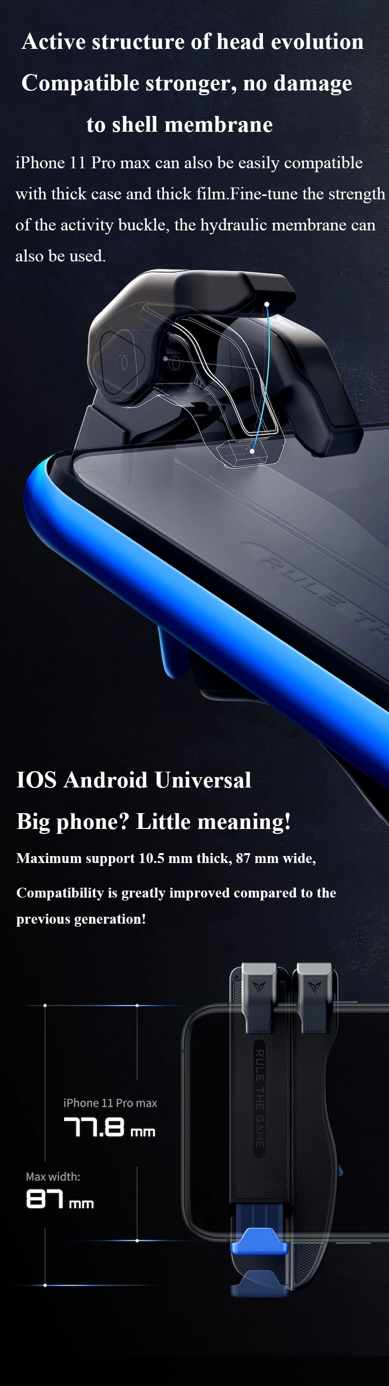 IPhone 11 Pro max также легко совместим с толстым чехлом и толстой пленкой. Точная настройка силы активной пряжки, гидравлическую мембрану также можно использовать универсальный большой телефон IOS Android? Мало смысла! Максимальная поддержка толщиной 10,5 мм, совместимость 87 мм значительно улучшена по сравнению с предыдущим поколением.