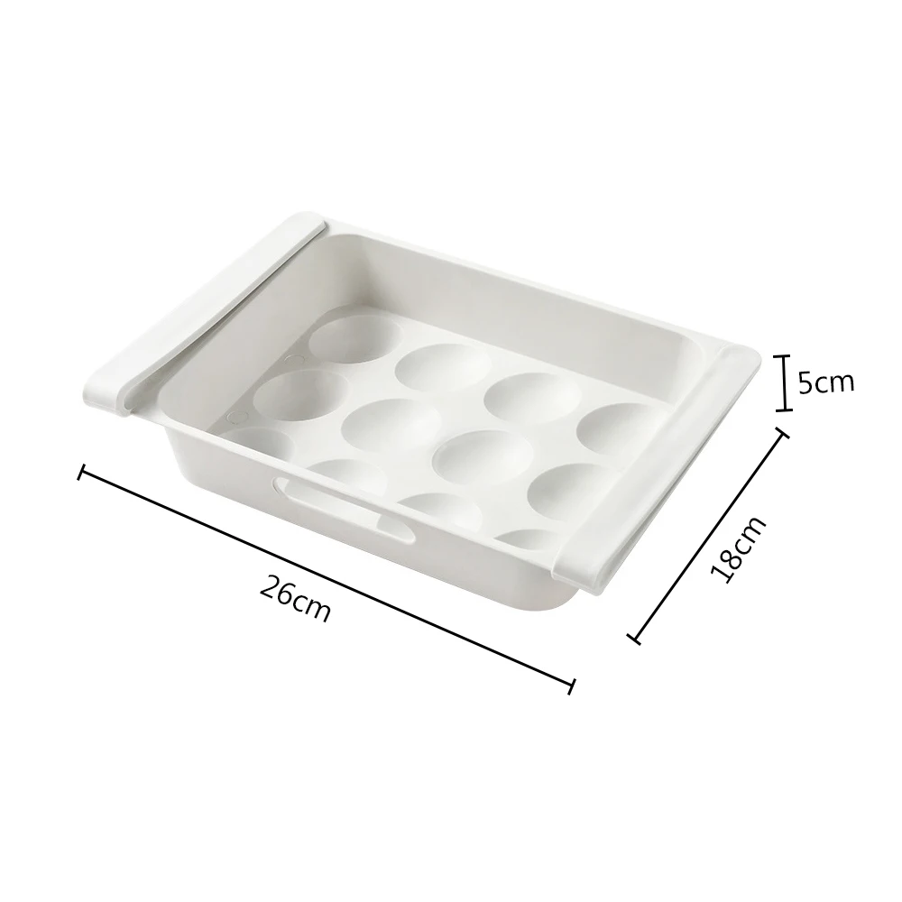 Особенности: Высокое качество: Изготовлен из высококачественного гладкого пластика без бисфенола А, безопасного для человеческого тела, а также обеспечивает долгий срок службы. Большая емкость: один контейнер для яиц может вместить до 12 яиц в соответствии с вашими повседневными требованиями, также хорошо подходит для сохранения свежести яиц. Круглая вогнутая форма также подходит для фиксации круглых фруктов, например помидоров. Экономия места: Конструкция Ящика позволяет зафиксировать ящик в нижней части решетки холодильника, это позволит наилучшим образом использовать пространство холодильника для хранения продуктов. Удобство в использовании: нужно просто прикрепить коробку с сеткой холодильника для использования, горлышко станет ручкой коробки для вытаскивания. Широкое применение: подходит для холодильника, морозильной камеры, кладовой, кухонных шкафов, кемпинга и пикника. Цвет: белый/серый Размер: 26 × 18 × 5 см Материал: полипропилен Посылка 1 коробка