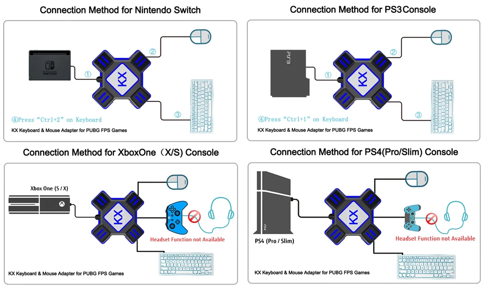 ★Адаптер KX-это инновационный продукт, который позволяет игрокам наслаждаться играми FPS на разных устройствах с помощью usb-клавиатуры и мыши. Этот адаптер совместим с Nintendo Switch, Xbox One, PS4 и PS3★Проводная мышь и Проводная клавиатура не задерживаются при воспроизведении игр, и это похоже на работу настоящей компьютерной мыши и клавиатуры. Поддержка сопоставления клавиш мыши и клавиатуры на Nintendo Switch, Xbox One (X/S), PS4 и ps3.пожалуйста, обратитесь к детальному руководству по эксплуатации, чтобы установить сопоставление клавиш.
