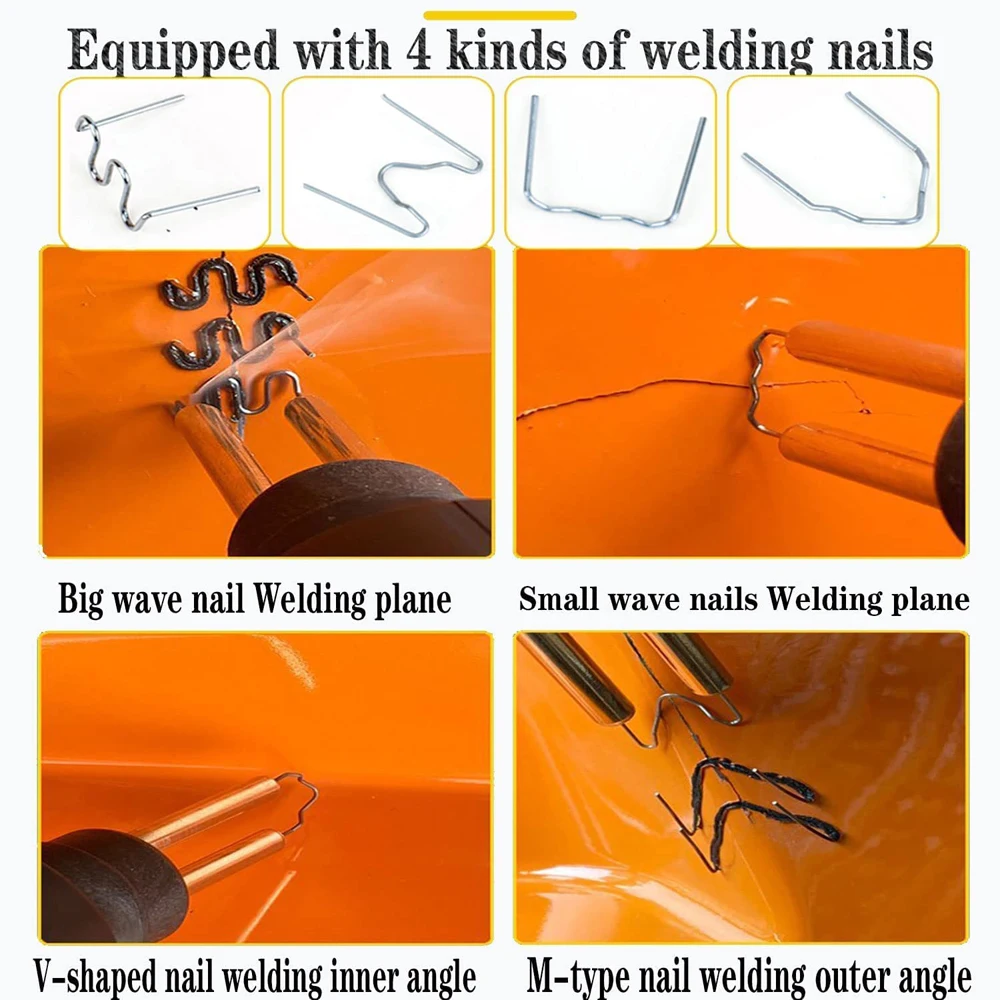 【 3s Быстрое нагревание 】: Модернизированный 70 Вт пластиковый сварочный аппарат может 3s быстро нагревать скобы, легко отремонтировать сломанные детали. Более сильное сопротивление вибрации и кручения после фиксации.