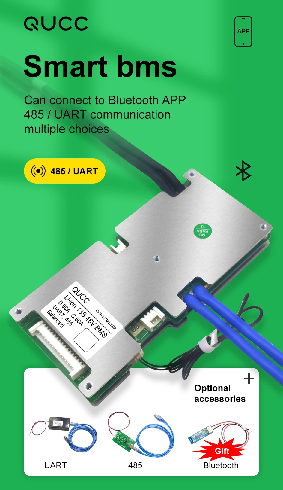 Если вы просто хотите заказать BMS с портом UART, мы рекомендуем вам купить еще один Модуль UART, чтобы вы могли переключаться между ними на вашем телефоне или ПК. Но, пожалуйста, обратите внимание, что Bluetooth и UART являются распространенными портами, вы должны использовать только один из них.