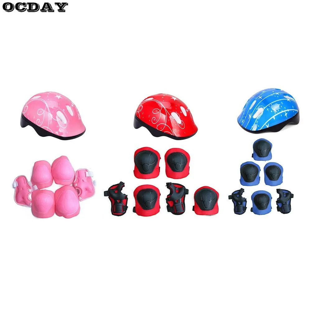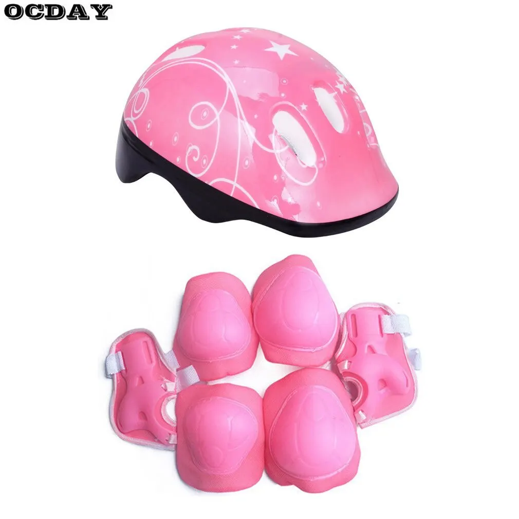 OCDAY 7PCS/Set Children Toy Sports Roller Skating Helmet Knee Elbow Wrist Pad Protective Gear Set Scooter Skate For Kids Sports