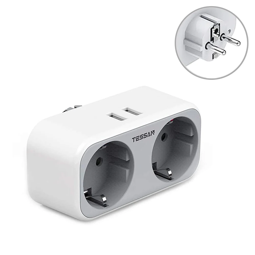 TESSAN plug зарядное устройство USB очень подходит для подключения к традиционным испанским заземленным розеткам. Просто подключите любое настенное зарядное устройство в Испании, Расширьте его до вилки переменного тока и двух usb-портов, устраняя хлопот при подключении и отключении многих зарядных устройств USB. Этот продукт может удовлетворить ваши различные потребности в зарядке в том же месте. Беспроводные многофункциональные вилки могут значительно сэкономить ваше пространство и сохранить ваши вещи в порядке.
