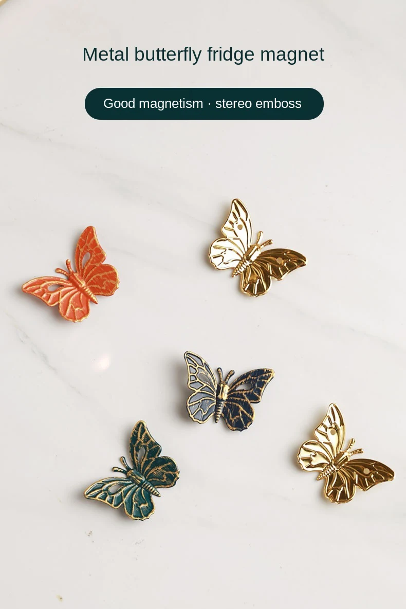 4 шт. магниты на холодильник в скандинавском стиле, металлические креативные магниты с рисунком бабочки, оранжевый, золотой, синий, зеленый сильный магнит