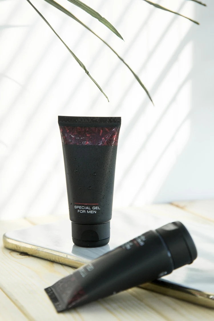 1. Возьмите соответствующее количество геля и равномерно нанесите его на пенис (Избегайте уретрального отверстия и блесна).