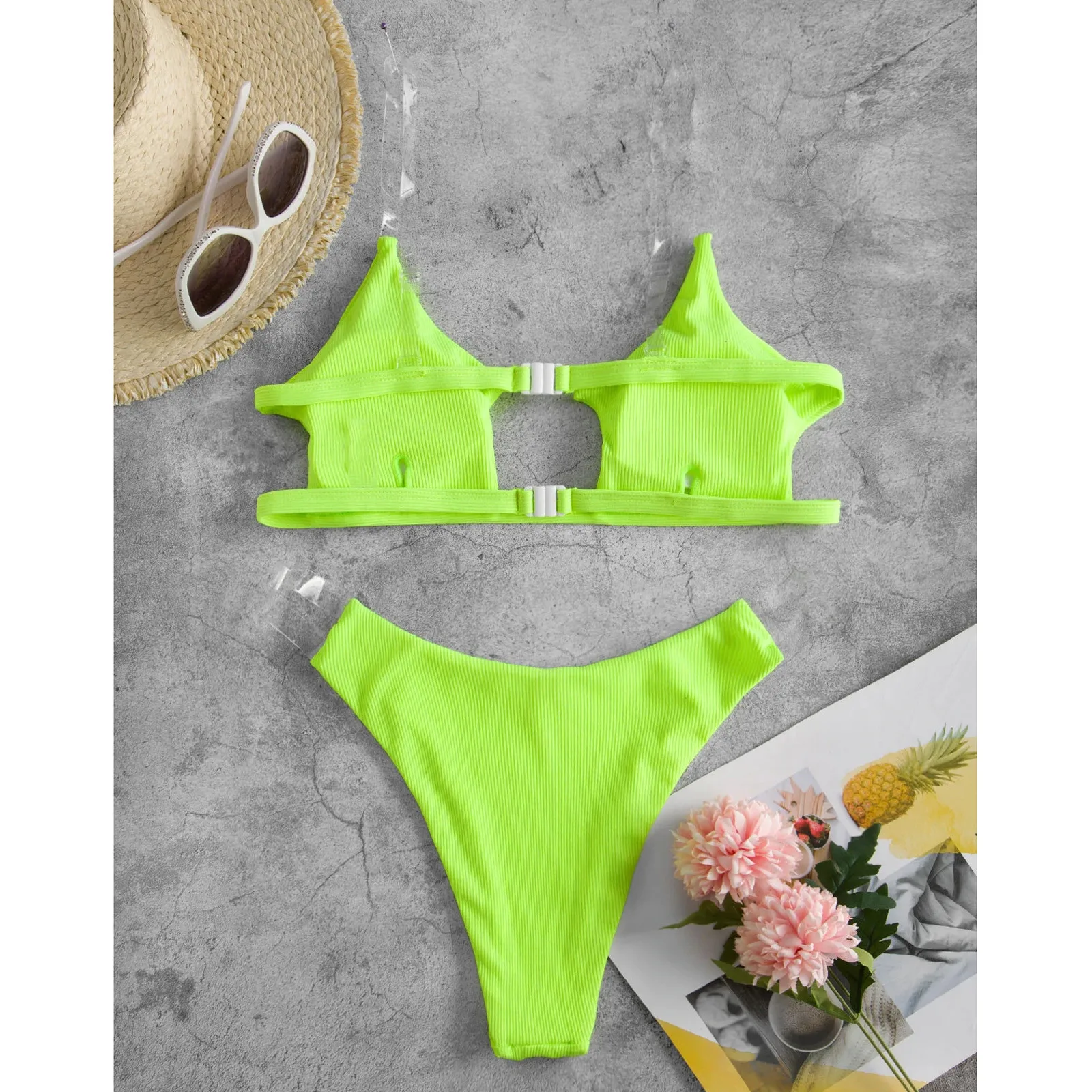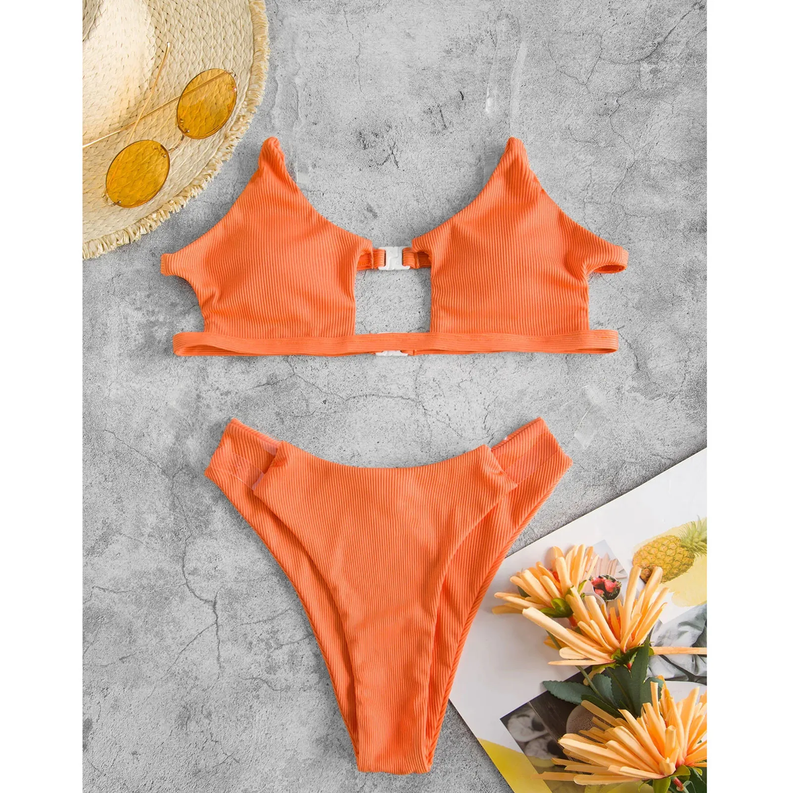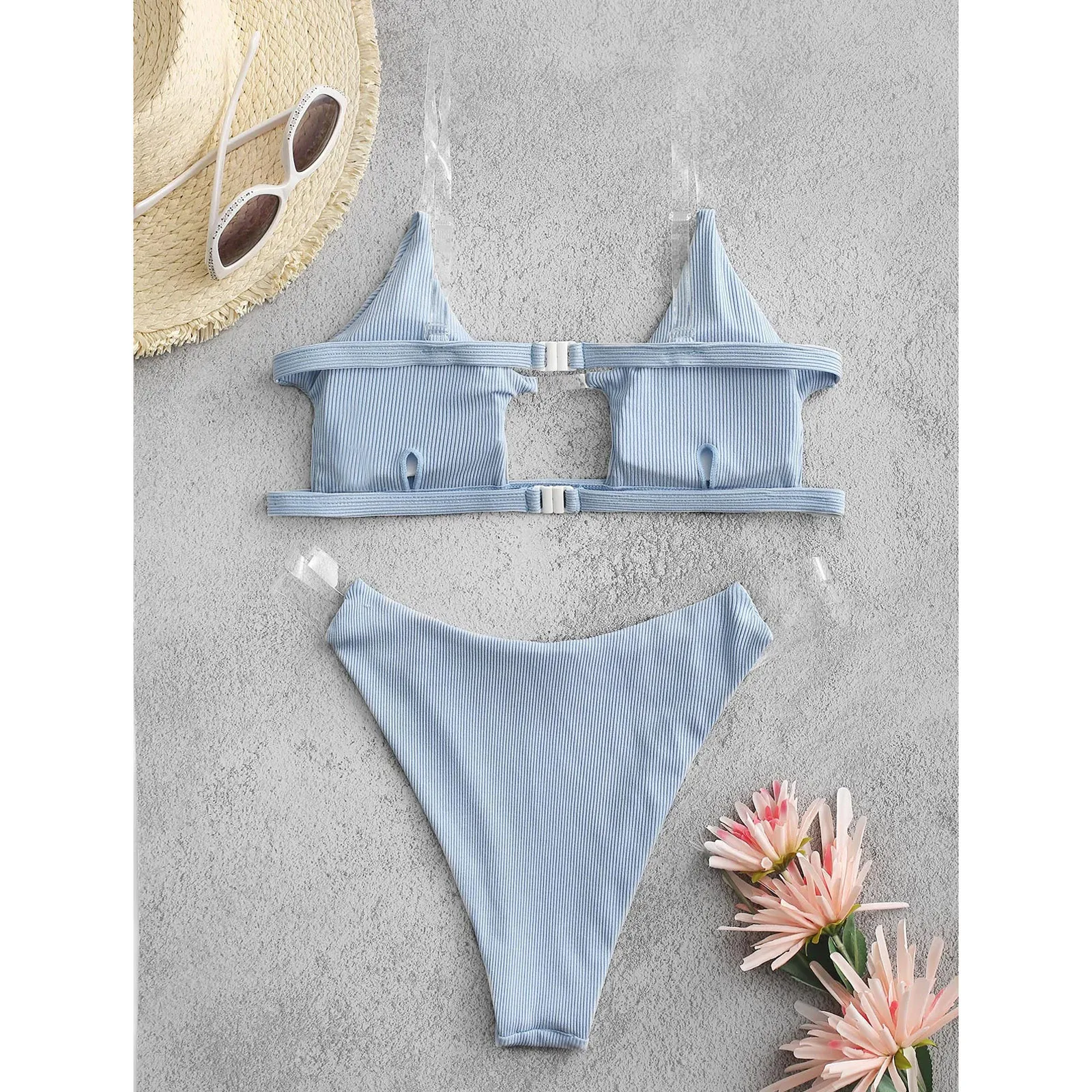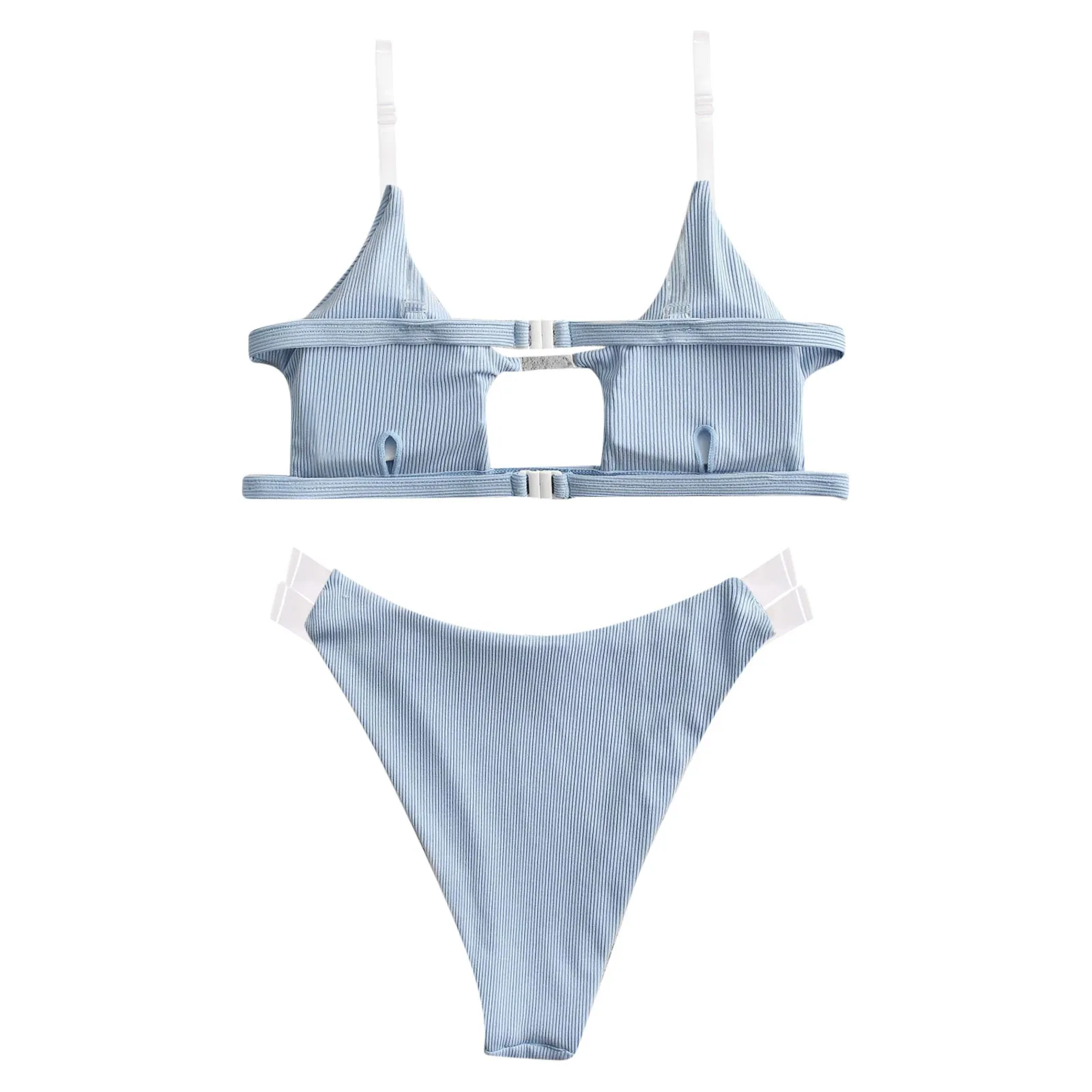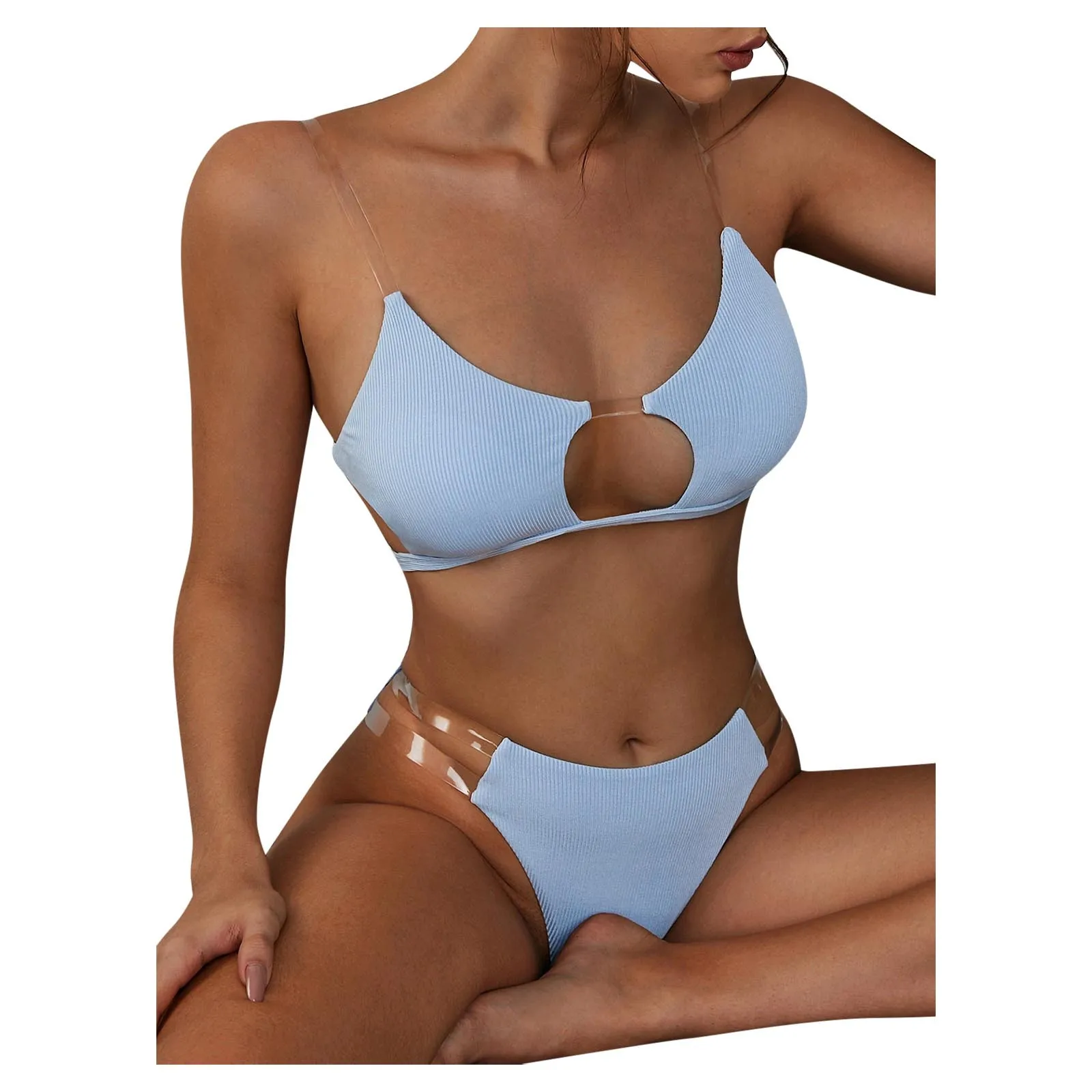 Женский прозрачный ребристый комплект бикини пуш-ап, бразильский купальник, пляжный купальник