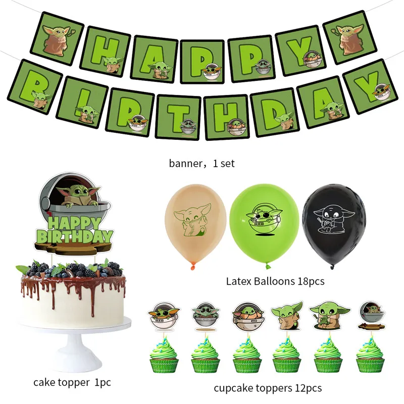 Тип товара: тематический набор воздушных шаров на день рождения «Космические войны йода» Цвет: как показано на фотографии Количество: 1 комплект Материал: латексные шары, бумажный баннер Упаковка: OPP мешок Применимо: вечерние дни рождения, детский день, детские игрушки, свадебное украшение, украшение для мероприятий, праздничное украшение и т. д.