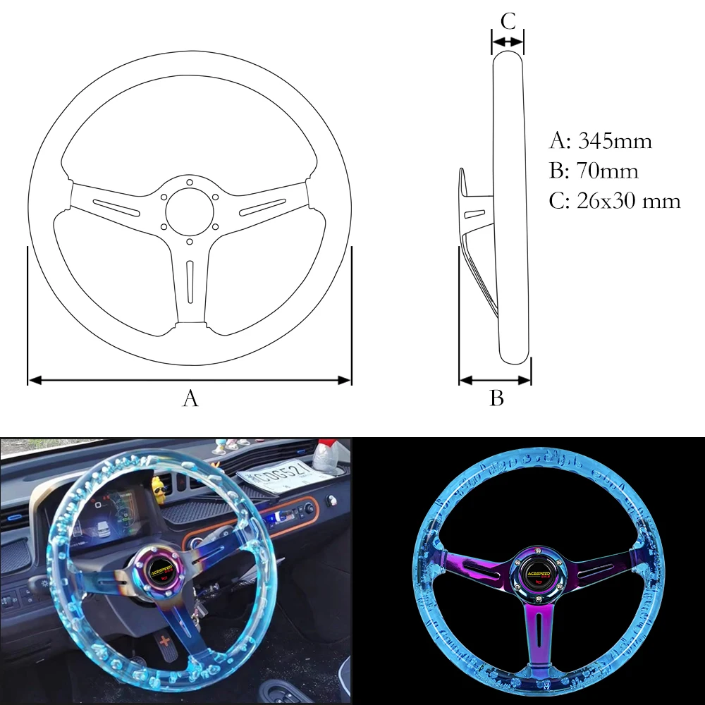 Акриловый руль 14 дюймов/345 мм JDM, спортивный гоночный автомобиль/ПК, управление дрифтом, руль
