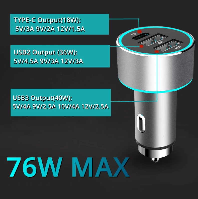 76W супер быстрое металлическое автомобильное зарядное устройство