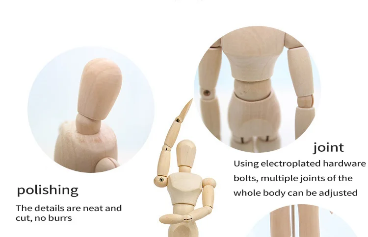 1. Соединения могут быть произвольно изменены для создания нескольких форм. 2. Многофункциональный, может использоваться в качестве украшения или в качестве хранения ювелирных изделий. 3. Мастерство древесины является изысканным и может храниться в чистоте в течение длительного времени. 4. Используется для очень уникальных домашних украшений, которые используют дерево в качестве сырья, деревянный цвет элегантный и простой. 5. Чтобы помочь художникам запечатлеть все правильные весы и тени для их рисунков и художественных работ. 6. Это красиво изготовленное изделие изготовлено из прочной твердой древесины и является идеальным компаньоном для любого начинающего художника. 7. Эти деревянные фигурки точно соразмерны, и они достаточно гибкие, чтобы имитировать многие позиции человека, поэтому это полезный инструмент для рисования человеческой фигуры. 8. Манекен художника сочленен, поэтому он может имитировать позы, действия и положения человеческого тела.