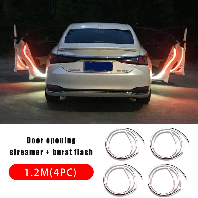 Car Interior Door Welcome Light LED Safety Warning Strobe Signal Lamp Strip 120cm Waterproof 12V Auto Decorative Ambient Lights