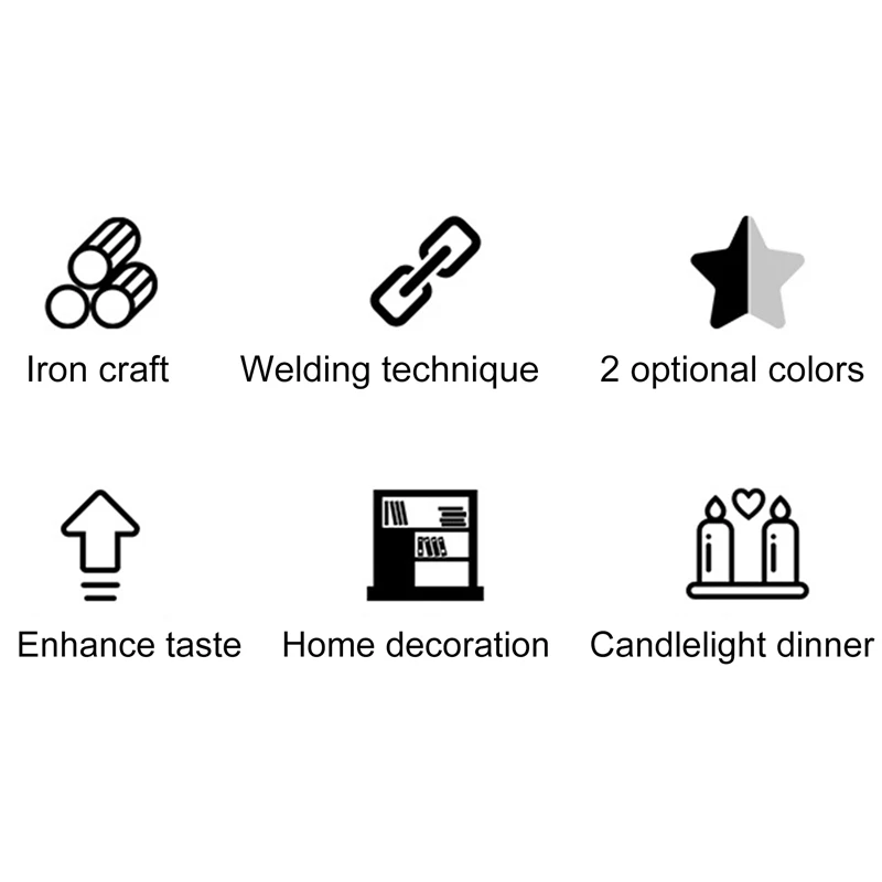 1. Стильный и прочный: подсвечник имеет ручную сварку, он стильный и блестящий в целом, прочный, не легко разъедает, подходит для различных домашних стилей.