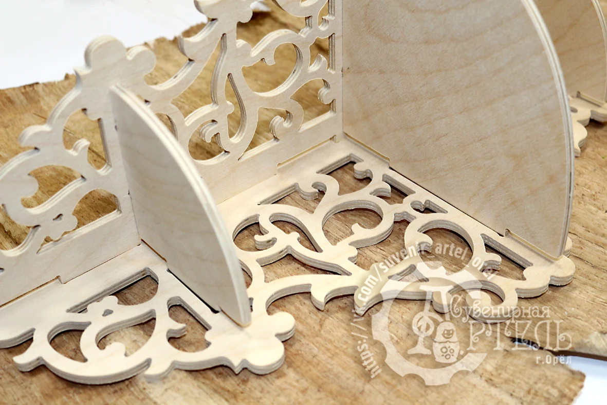 Небольшие размеры полки и достаточно сдержанный дизайн, позволяют не нарушать общую концепцию интерьера в любом помещении. В дизайне полки не использованы канонические и религиозные элементы, что даёт возможность её использования не только как иконостаса. Изготовлена из высокосортной фанеры 6мм.