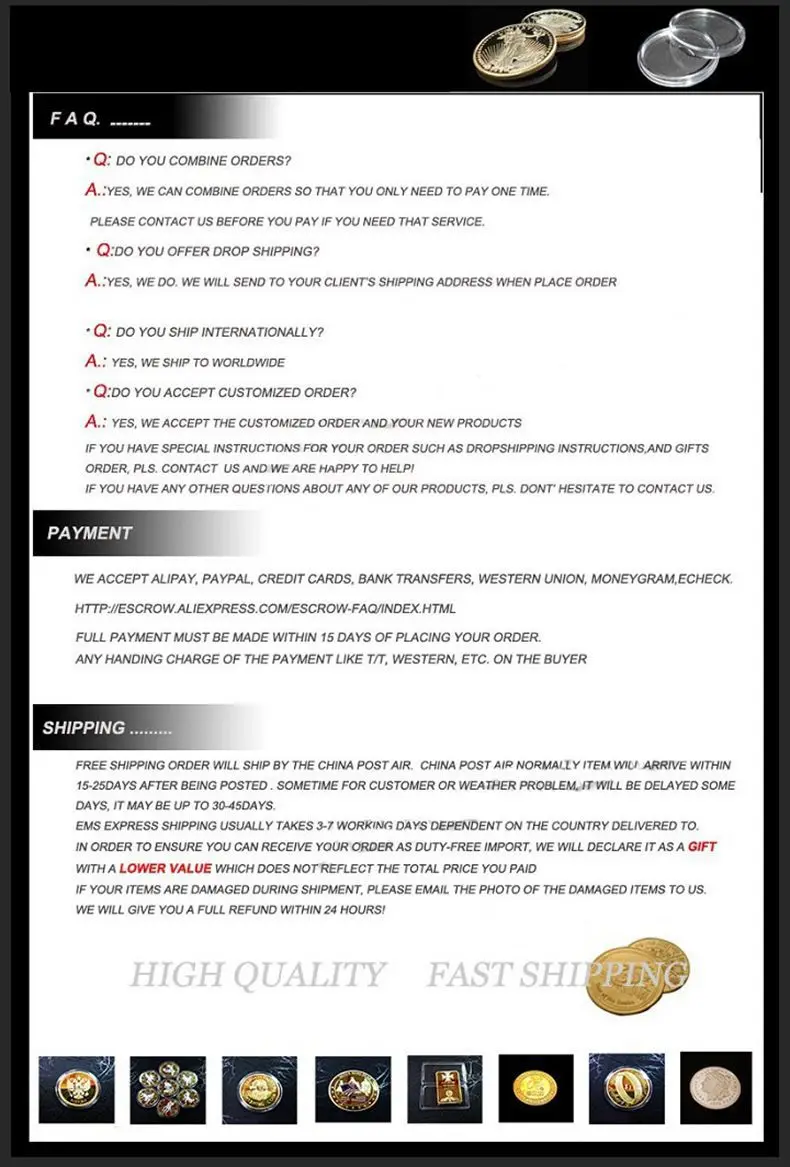Thickness: 3mm, diameter: 40mm Conversion: 1.57 x 1.57 x 0.12 in Material: iron, brass, copper, copper, zinc alloy Process: hydraulic iron art Including: 1 commemorative coin Professional production of foreign commemorative coins, commemorative medals, all kinds of foreign metal commemorative coins (commemorative medals are not legal tender) Spotlight color difference, manual measurement error 1-2mm, hope to understand