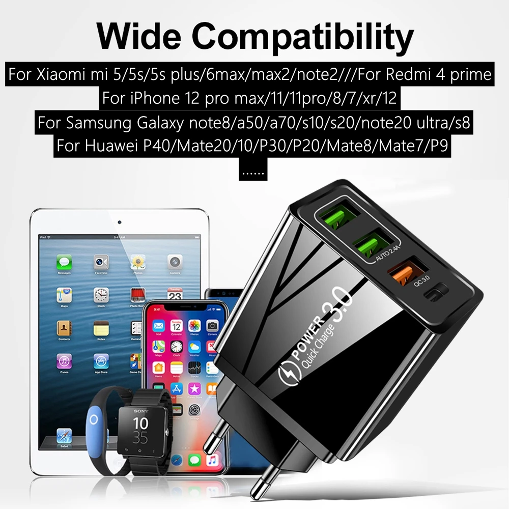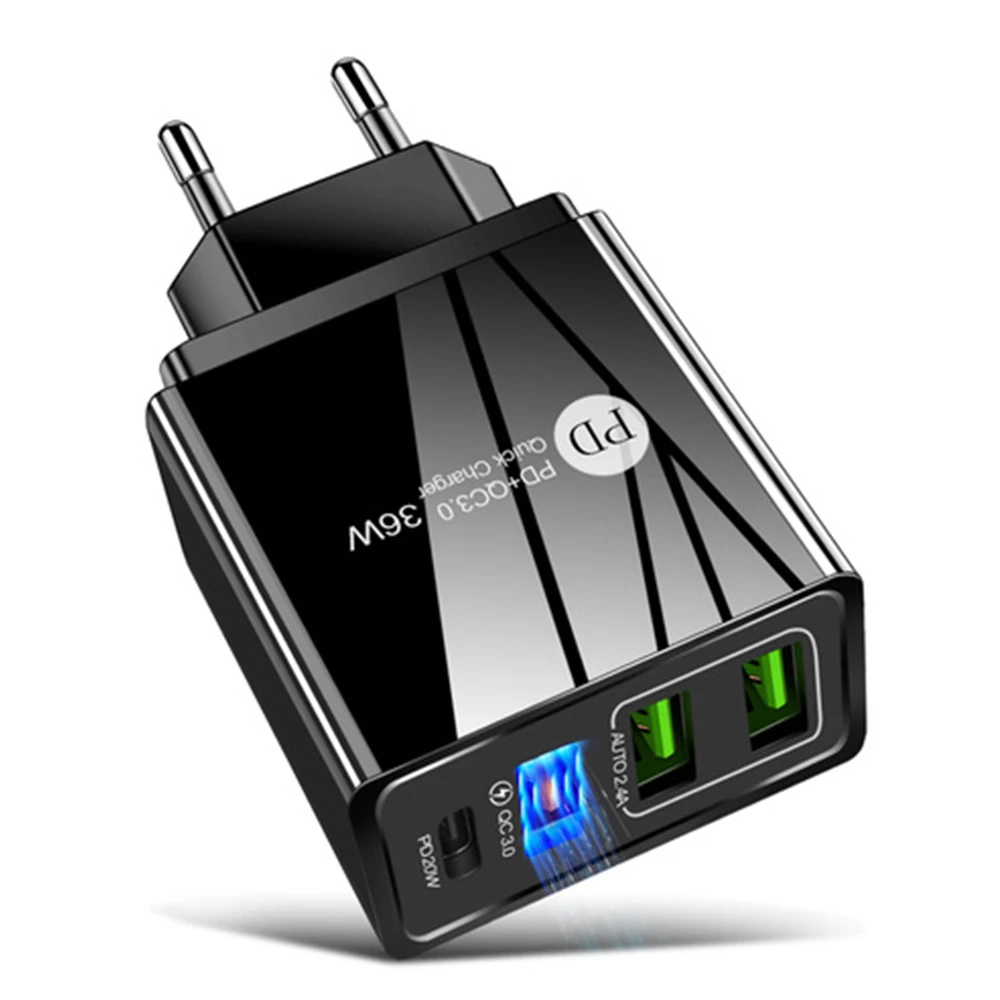 EU/US/UK штепсельная Вилка USB зарядное устройство 20 Вт PD Быстрая зарядка 3,0 для iPhone 12 11 Type C 18 Вт быстрое зарядное устройство для Xiaomi Мобильный телефон зарядка высокоскоростное зарядное устройство