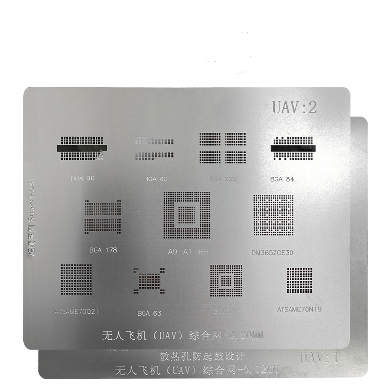 С этими двумя сетками для посадки олова, он может решить проблему посадки олова различных чипов BGA на более чем 95% материнских плат дронов на рынке!