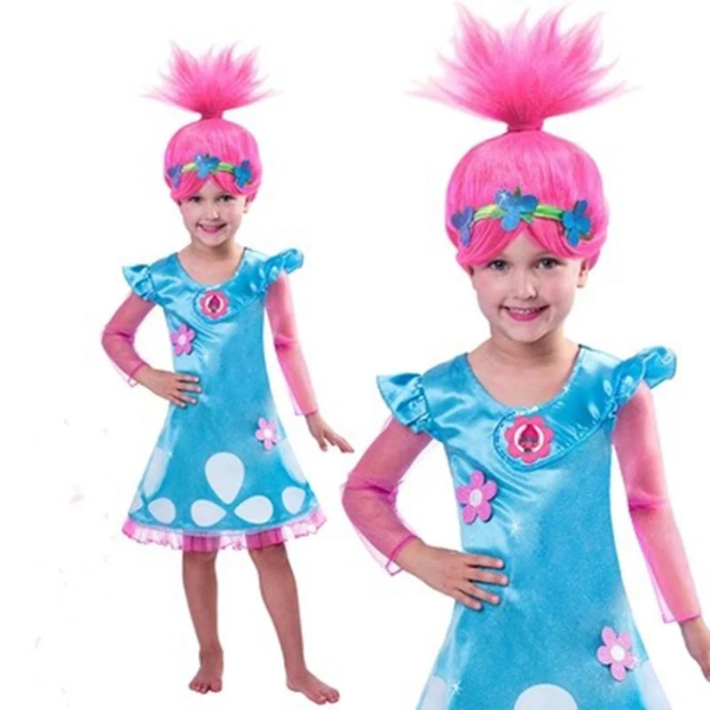 Платье троллей косплей парик + повязка на голову парики "Тролли" платье 2019 вечерние платья троллей для девочек