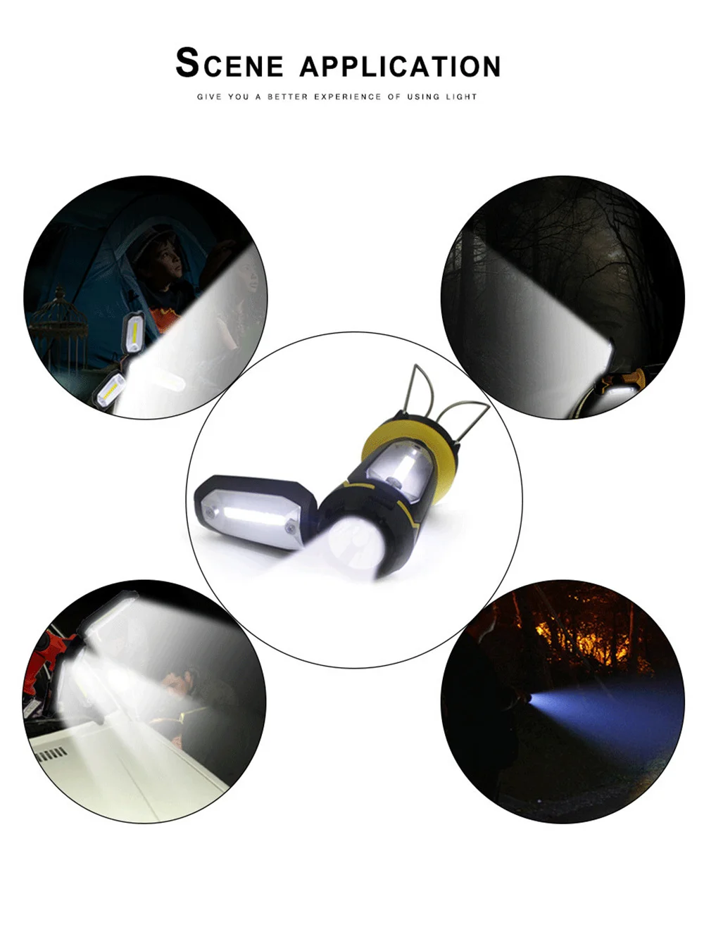 USB Перезаряжаемый наружный портативный фонарь Led Flash светильник 6 режимов работы XPE + 3 * COB складной кемпинг водонепроницаемый тент светильник