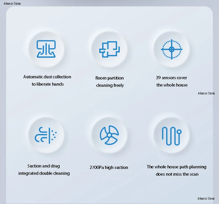 Автоматический Сбор пыли для освобождения рук Очистка перегородки комнаты 39 датчиков покрывают весь дом Интегрированная двойная очистка всасывания и сопротивления 2700 ПА высокое всасывание Планирование маршрута по всему дому не пропустите сканирование