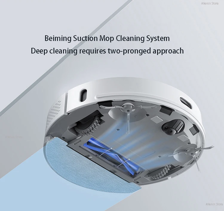 Боковая щетка с динамическим контролем скорости Поверните вдоль стены на высокой скорости и энергично разверните пыль на стене Плавающий основной щетки на палочках к земле, что обеспечивает глубокое очищение кожи