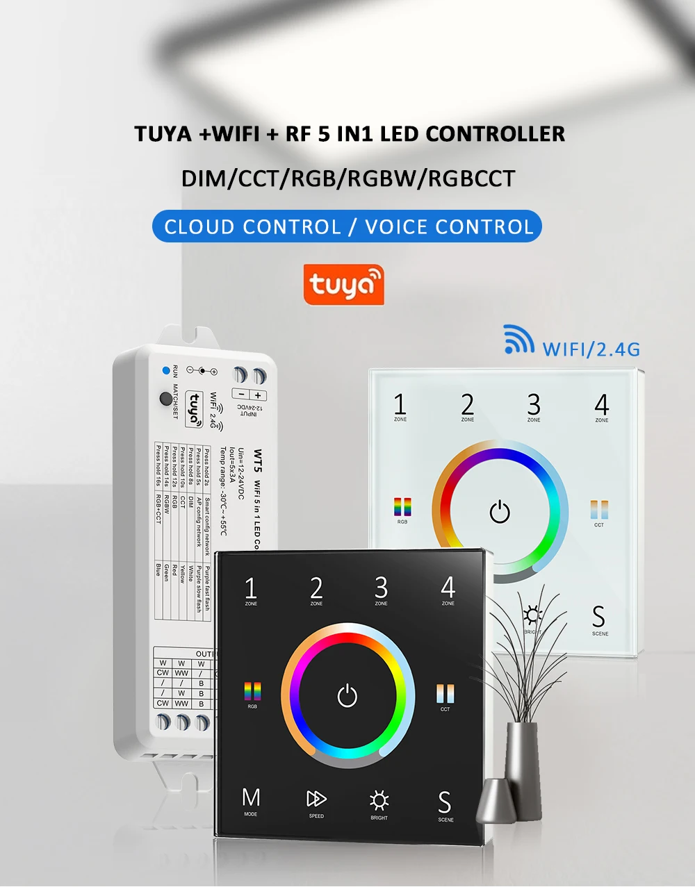 WT5 Tuya Smart RGBCCT контроллер 12 в 24 В постоянного тока 5 в 1 диммер RGB CCT RGBW RGBWW светодиодный ленточный светильник Сенсорная панель 2,4G RF Wifi контроллер