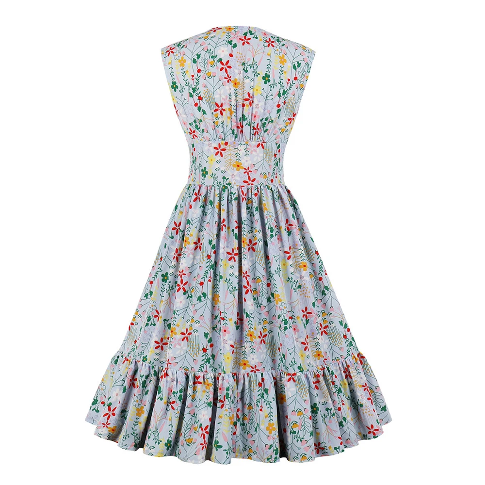 Милое платье без рукавов с оборками VD1928 vestido de mujer, винтажное однобортное летнее пляжное платье с цветочным рисунком и v-образным вырезом