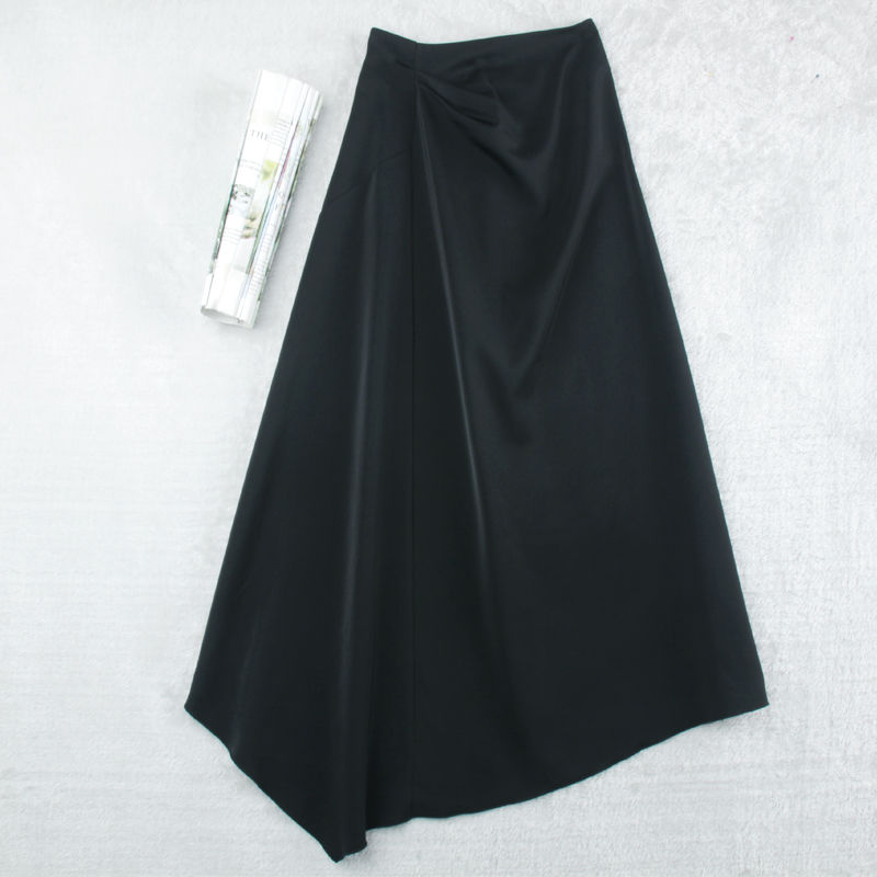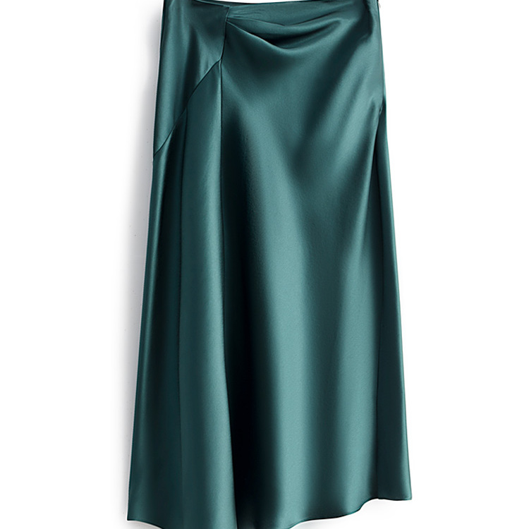 Длинные юбки для женщин 2021 летняя корейская мода Высокая талия атласная элегантная Асимметричная зеленая Офисная Женская юбка Jupe Femme Y361
