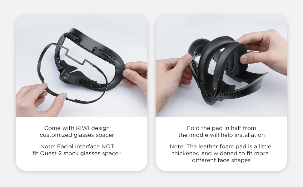 Rely on the large userbase of KIWI design, we know that our customers are bothered by muggy, steam, and light bleeds. KIWI design takes great effort to this update. You will get a stylish facial interface with the largest air vents in the market, which does great help for ventilation and breathability. A fantastic gift to your family and friends. (Not fit stock glasses spacer)