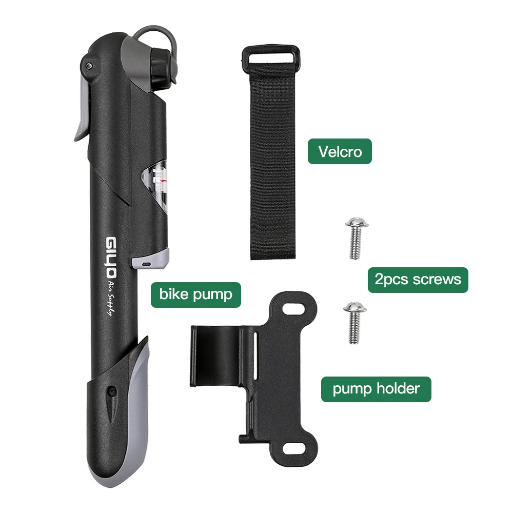 [Легко переносить]:Легкий и прочный удобный велосипедный насос оснащен монтажным кронштейном, который может прикрепить насос для шин к раме велосипеда, используя ремень с крючком и петлей и крепежные винты надежно удерживают насос на месте.