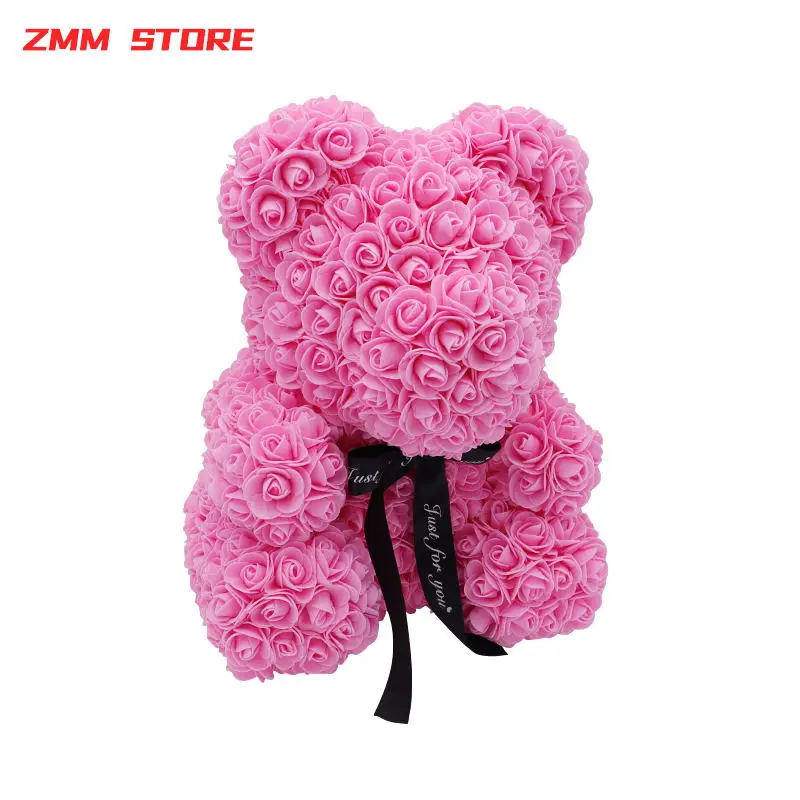 25/40 см роза с узором из сердечек с изображением медведя Искусственный цветок розы с мишкой Тедди для женщин на День святого Валентина, свадьбы, дня рождения, рождественский подарок, Прямая поставка