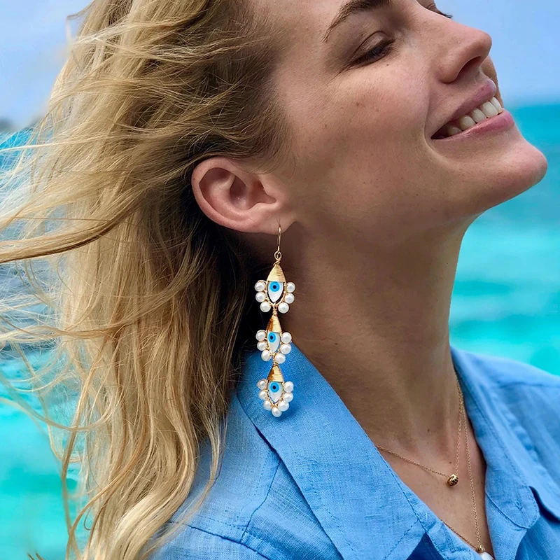 Богемные длинные капельки dang;e креативные Перламутровые Бусины Ручной работы от сглаза Лолита золотые проволоки beckjewels серьги для женщин